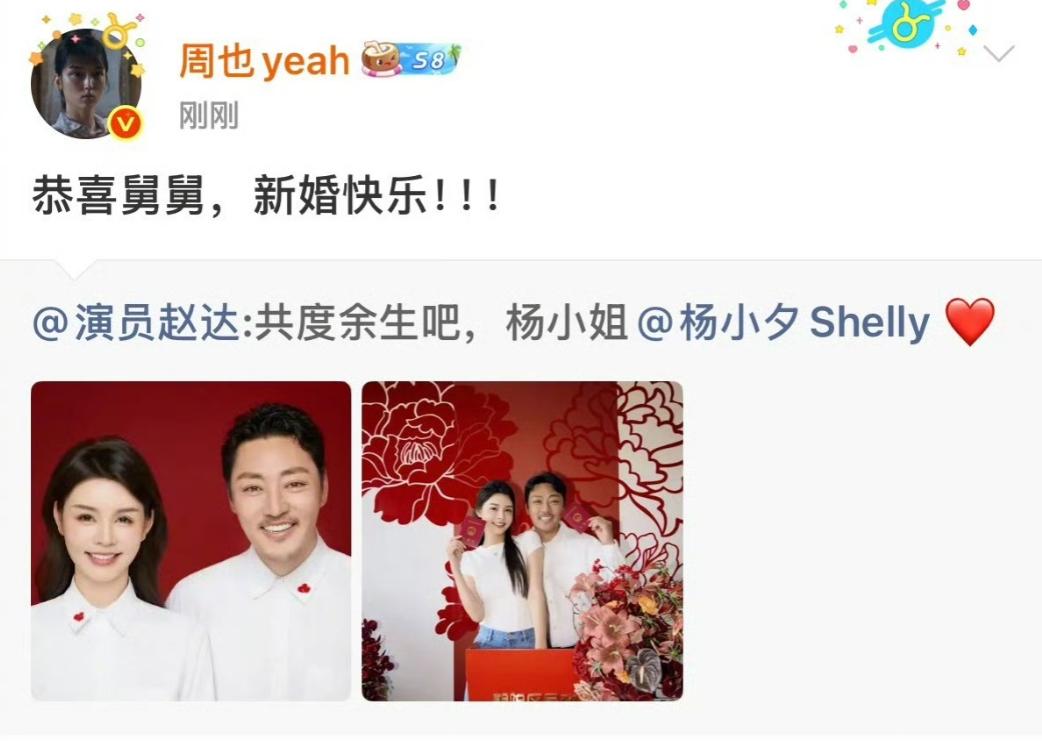 这次官宣结婚,赵达依旧延续了自己的风格,没有华丽的文案,没有精修的海报,甚至没有标注具体的领证日期,只晒出一张红底白衫的结婚证照片,配文一句简单的“共度余生吧,杨小姐”,就足以传递出满满的幸福。