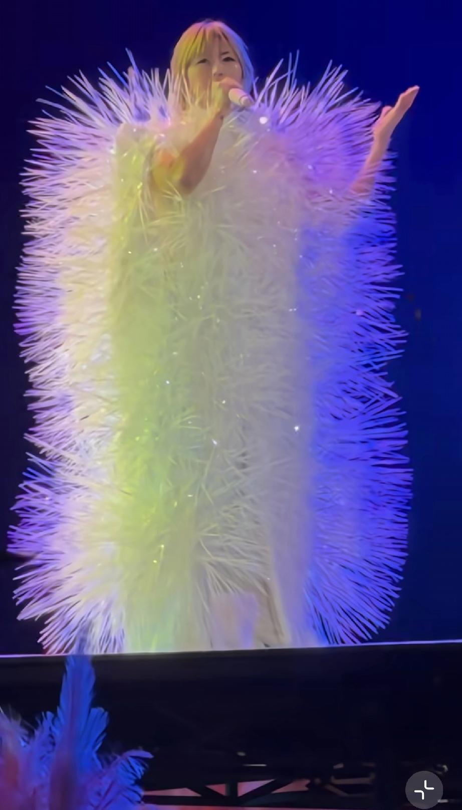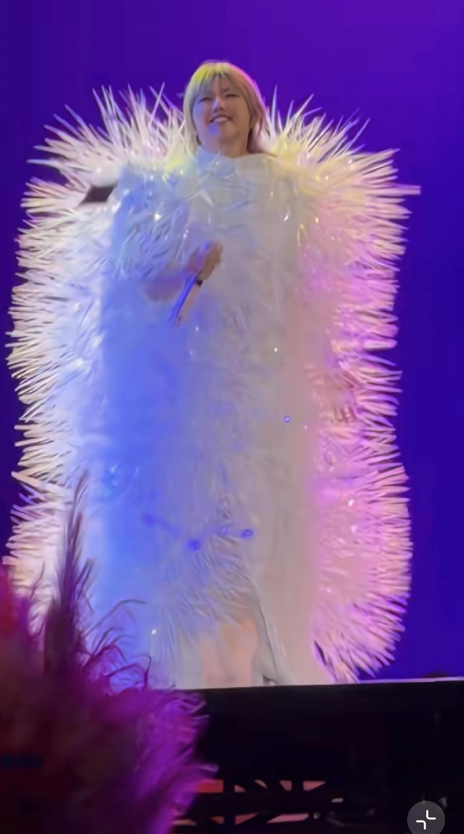 4月10日,孙燕姿苏州演唱会第1场,这个海胆造型实在是太雷人了,远看台上就像一个胖胖的刺球,第一眼以为是张惠妹来了。