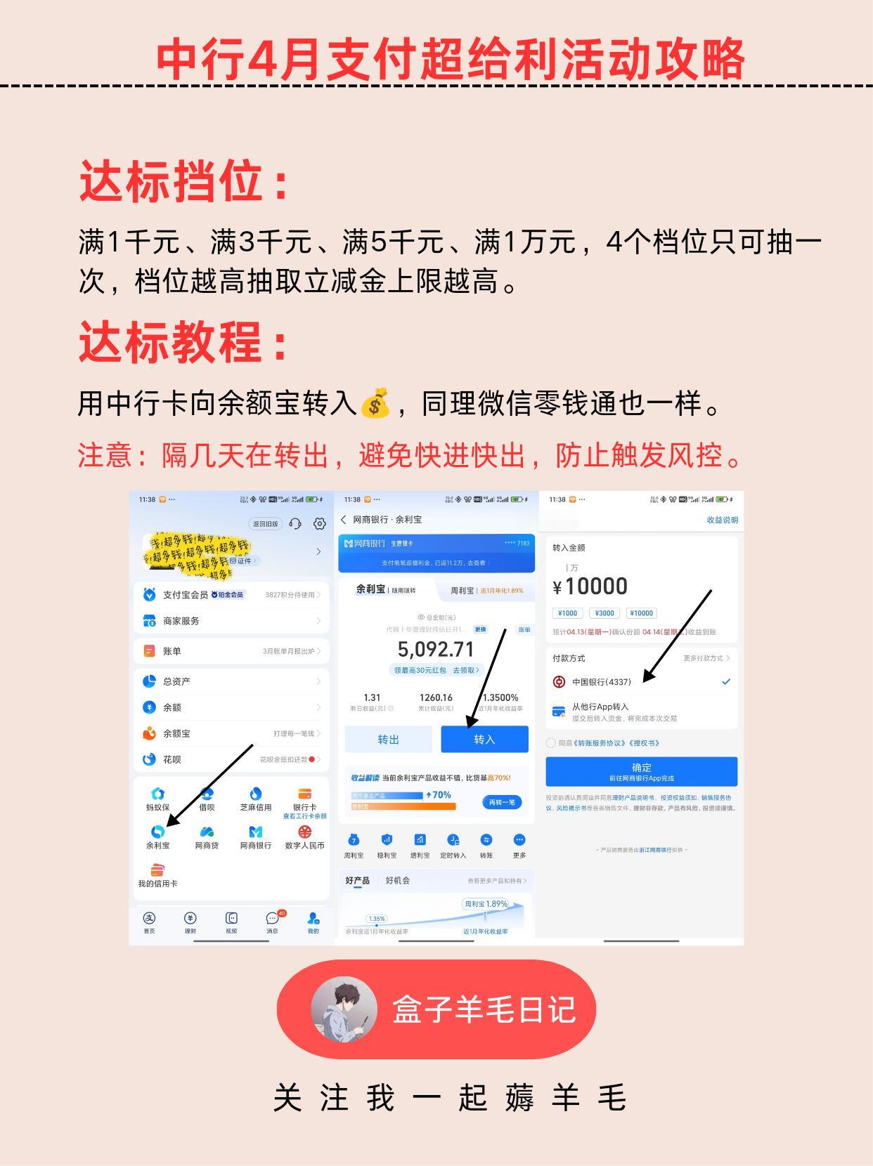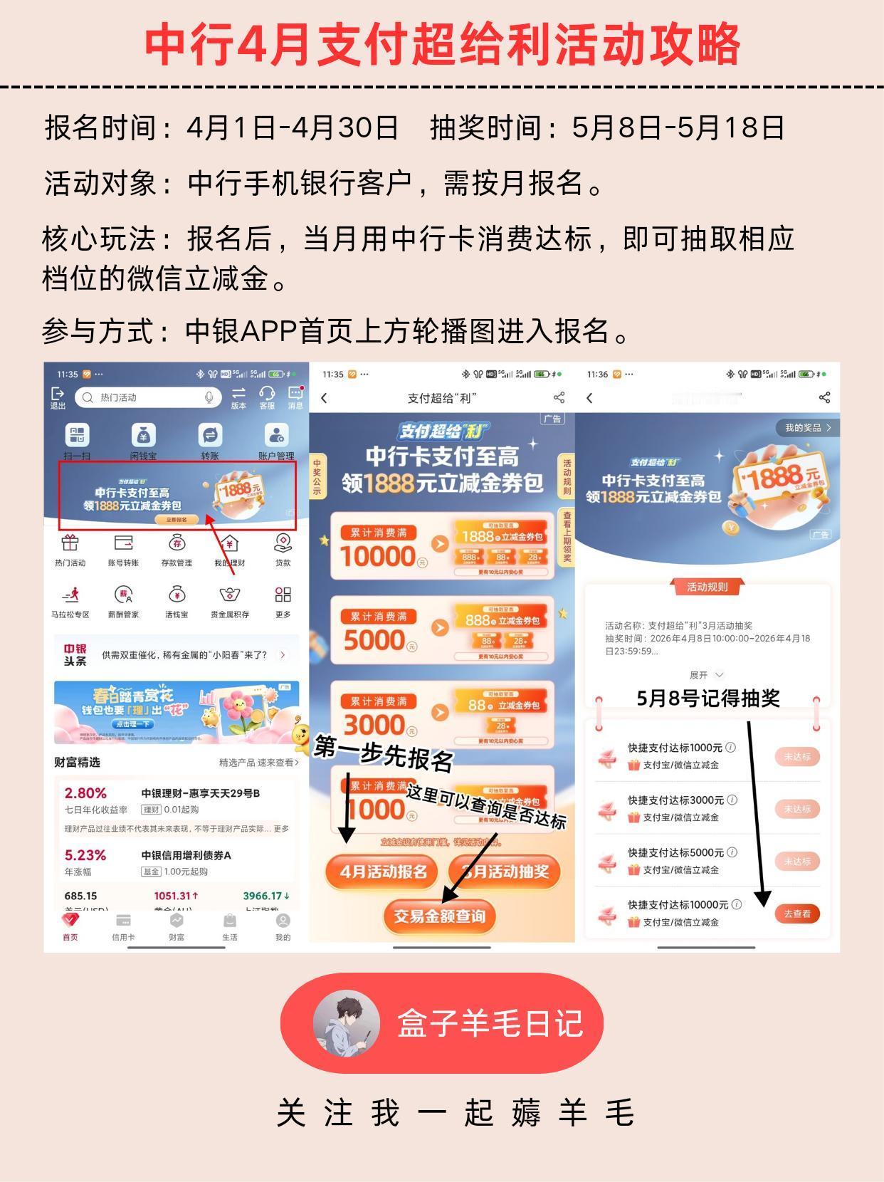 4月份中国银行 支付超给利 消费达标抽立减金详细攻略