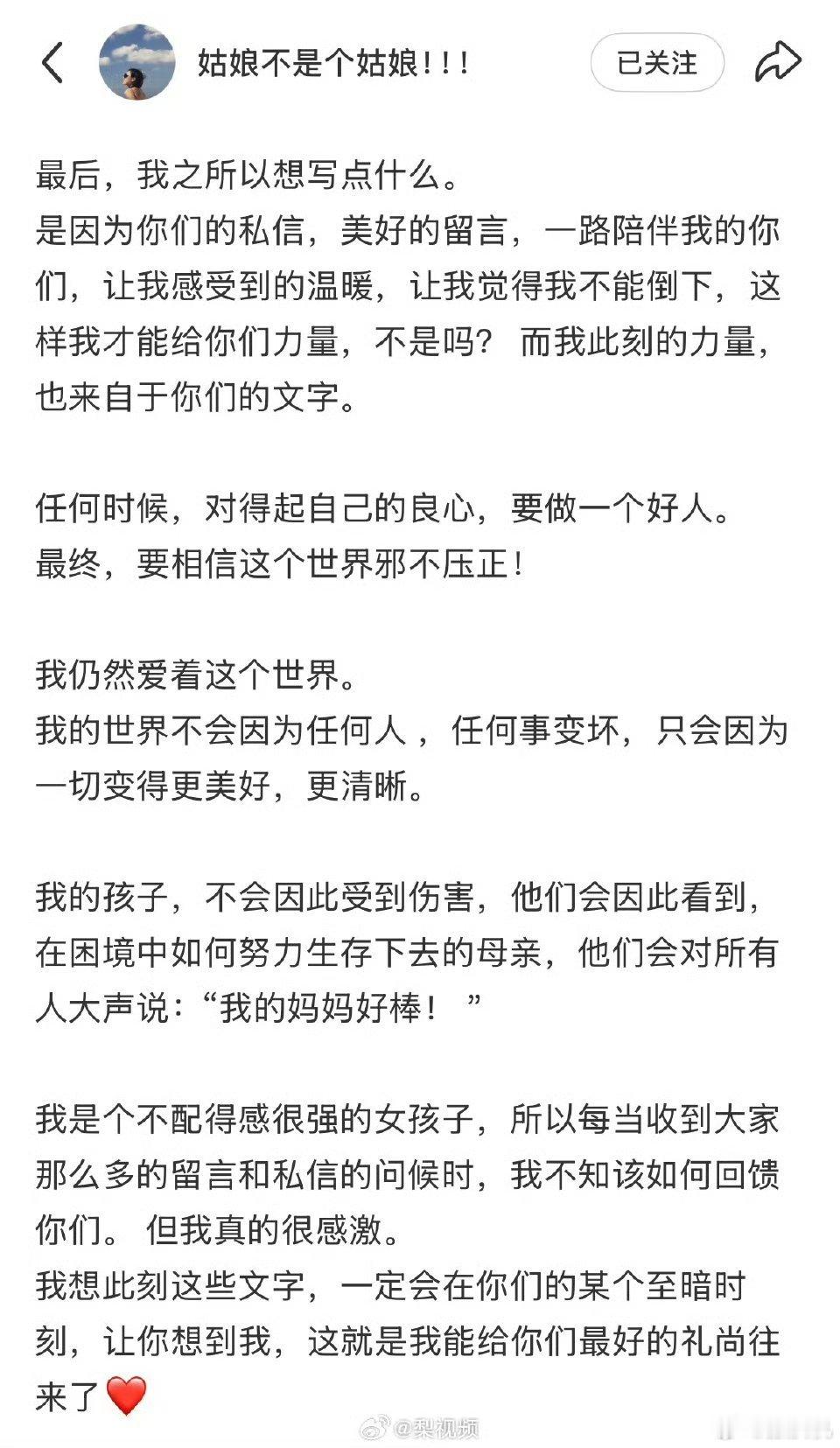 通篇走“坚强妈妈”“破茧成蝶”“不向操蛋世界投降”的励志人设,全程没提丈夫出轨的核心问题,反而把自己塑造成了被世界伤害、独自扛下一切的受害者,还拿女儿幼儿园的细节卖惨、立母爱人设。