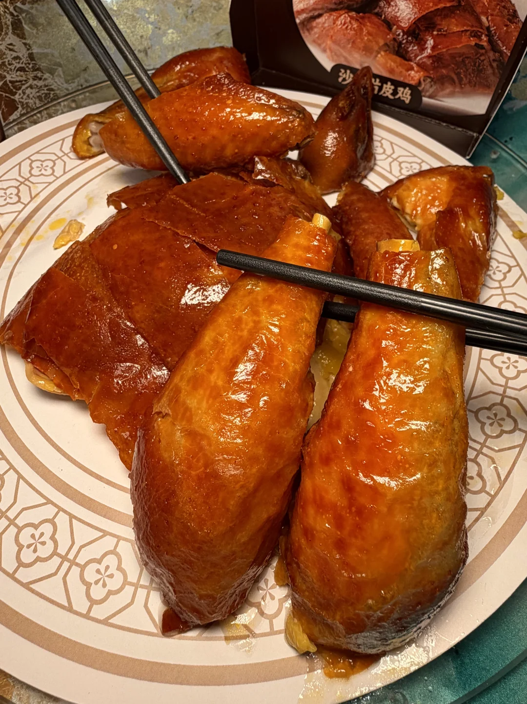 现片现吃的的沙姜片皮鸡!外皮酥脆ju多汁🤤