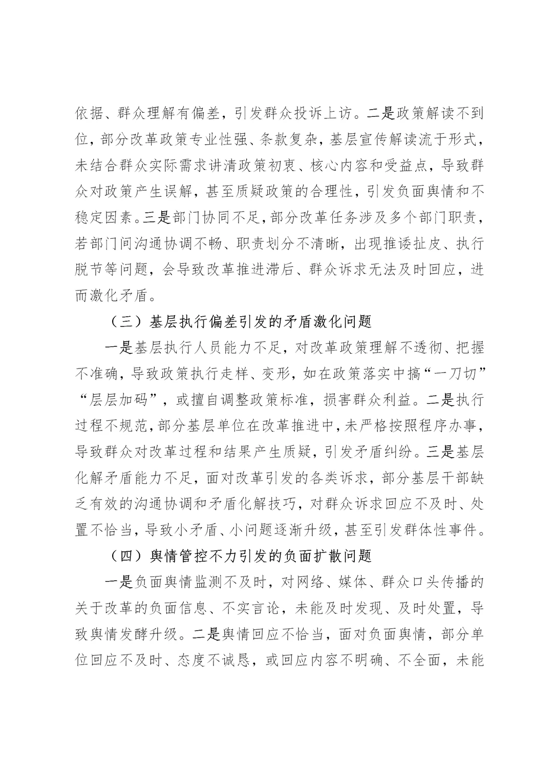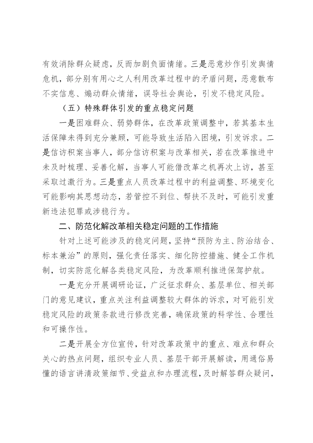 改革任务涉及安全稳定问题及工作措施