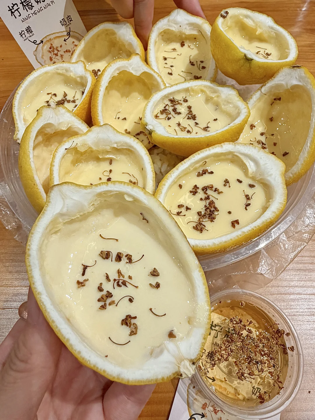 柠檬里面是奶呼呼柠檬奶皮🍋闻起来还有淡淡桂花柠檬清香~