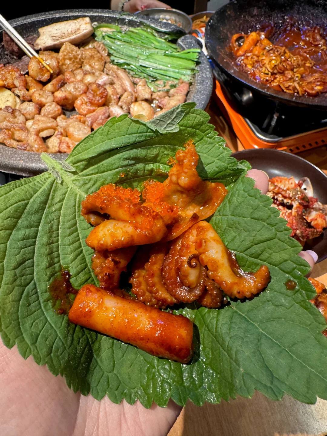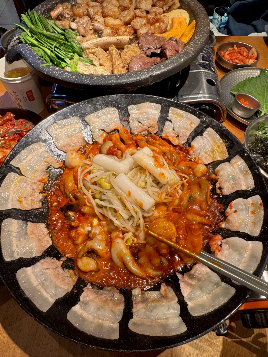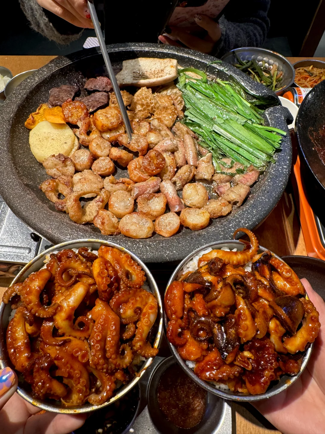 还点了辣章鱼锅,章鱼五花肉拌饭可香了!!