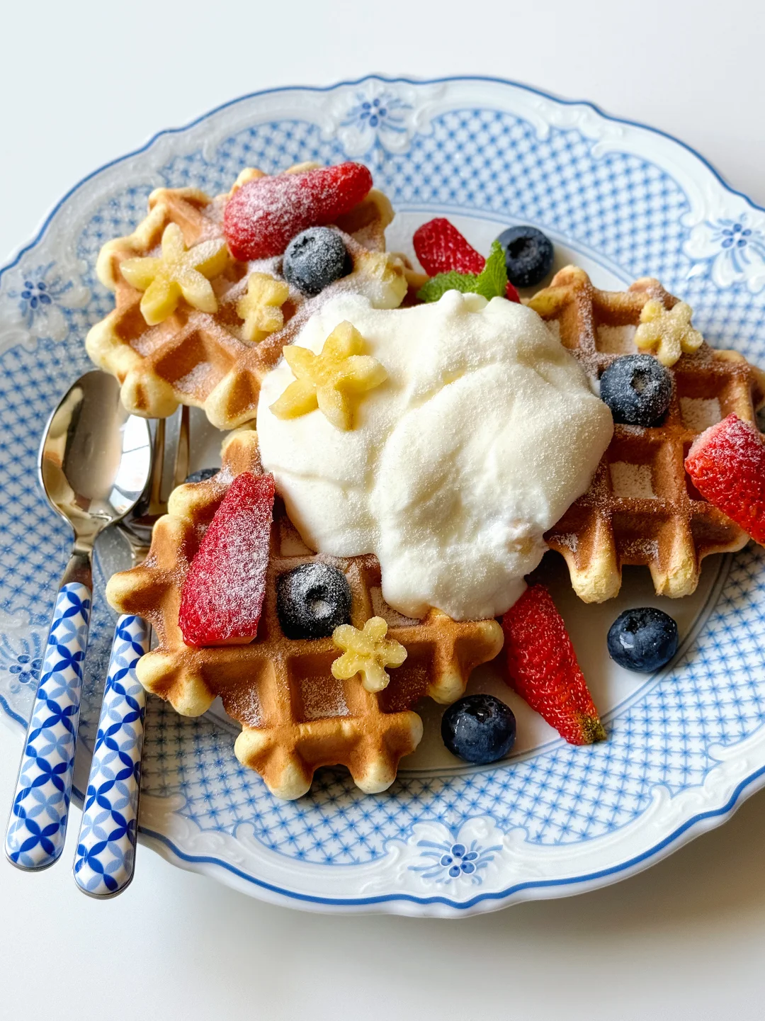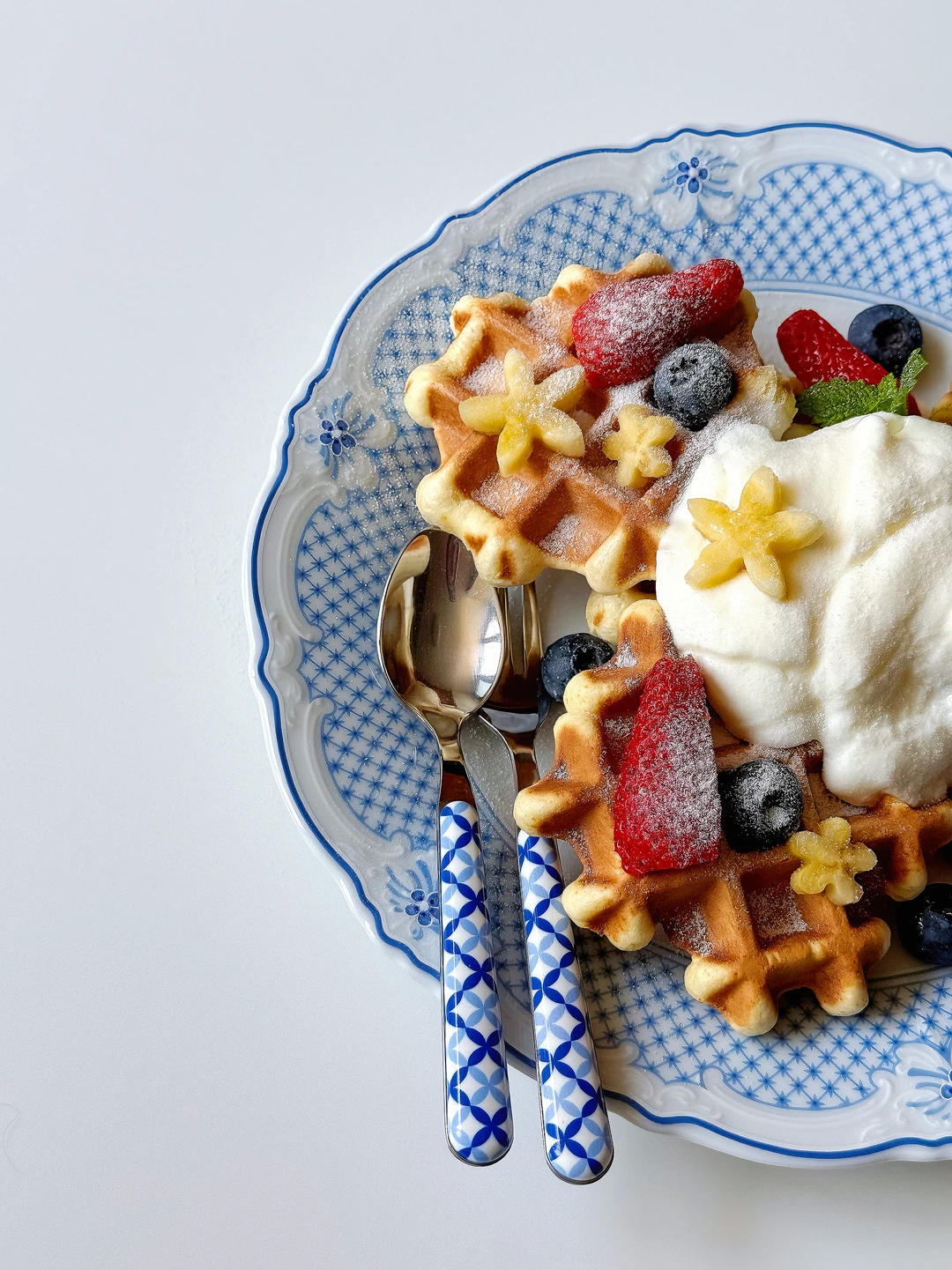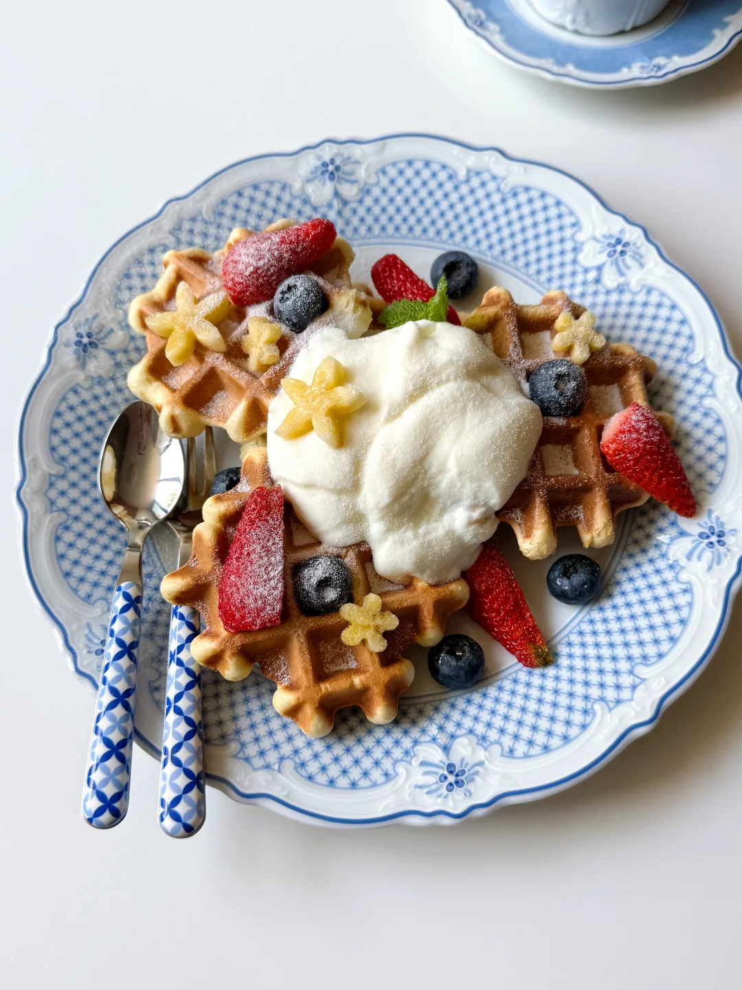 今日早餐:华夫饼🧇/草莓🍓/ 蓝莓🫐/ 热拿铁☕