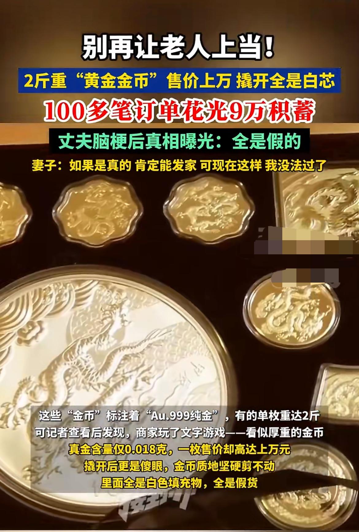 “真没法过了!”河南一妻子照顾突发脑出血的丈夫,在床底翻出200多枚“纯金”纪念币,本以为这下能发家,结果一检测,这些标注“纯金”的纪念币,每枚含金量才0.018克,根本就是镀金工艺品!丈夫居然瞒着她,把9万多家庭救命钱全砸了进去!