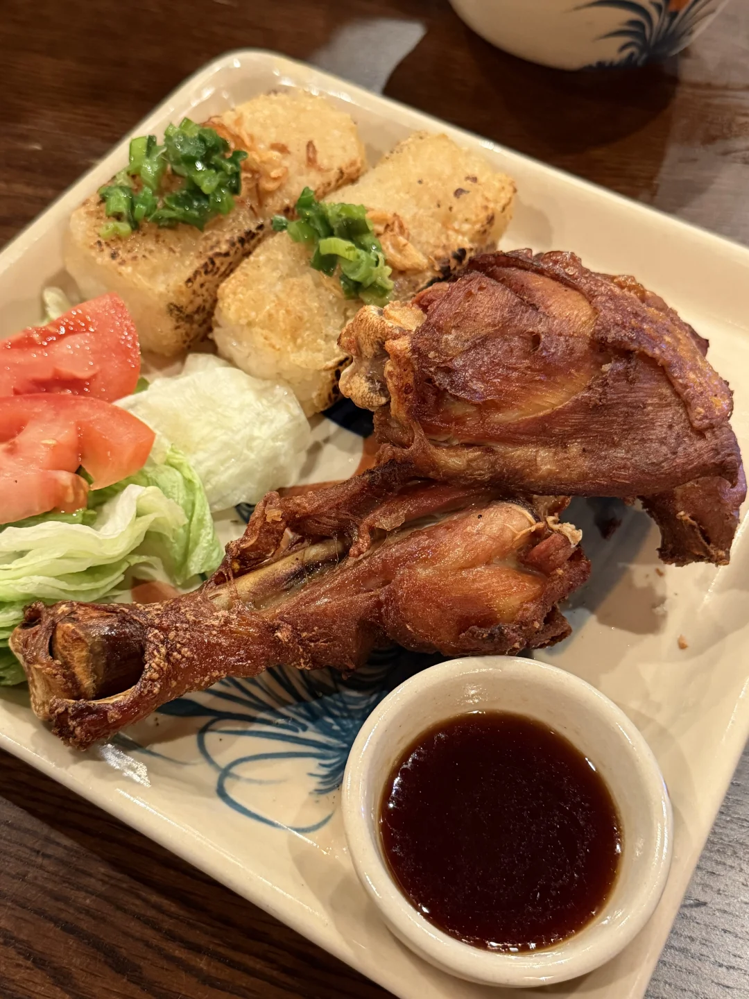 ✅烧鸡好吃的,烤的香脆不沾酱也有味道了、配的糯米饭偏甜口但也糯糯不错