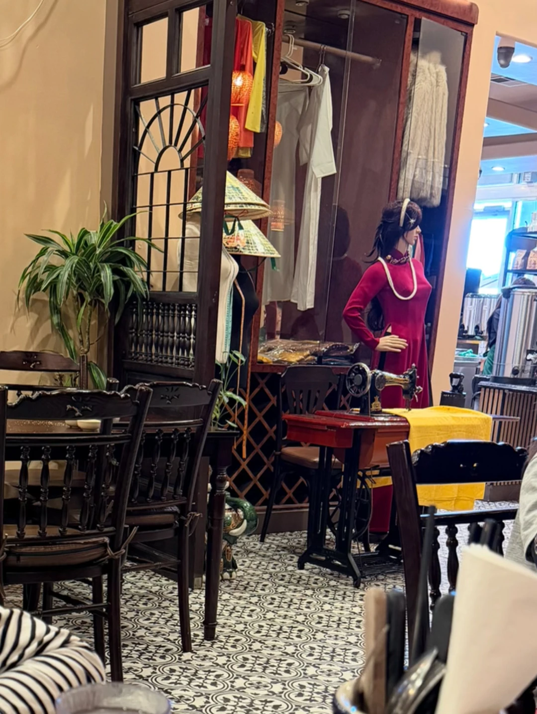 从门口满是花花草草,加一进去越南dj音乐➕装饰➕穿着越南服装的员工💯
