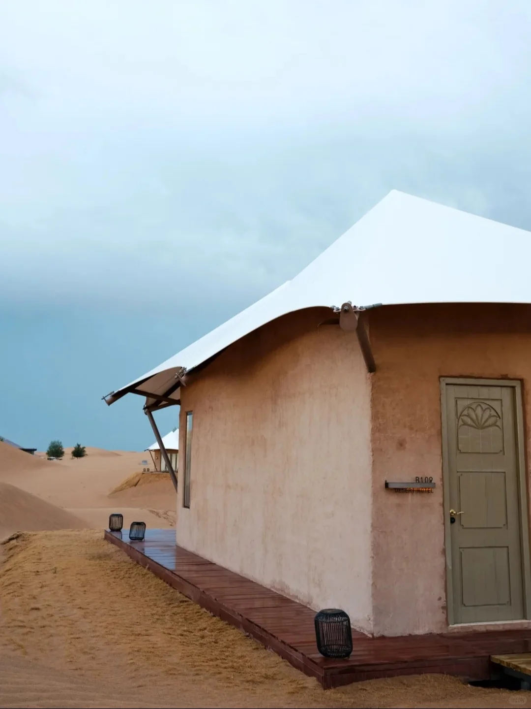 ✅ B区沙景独栋木屋1晚:独栋散落在沙丘上,推门就是沙子,门口配滑沙板,小朋友能玩一整天