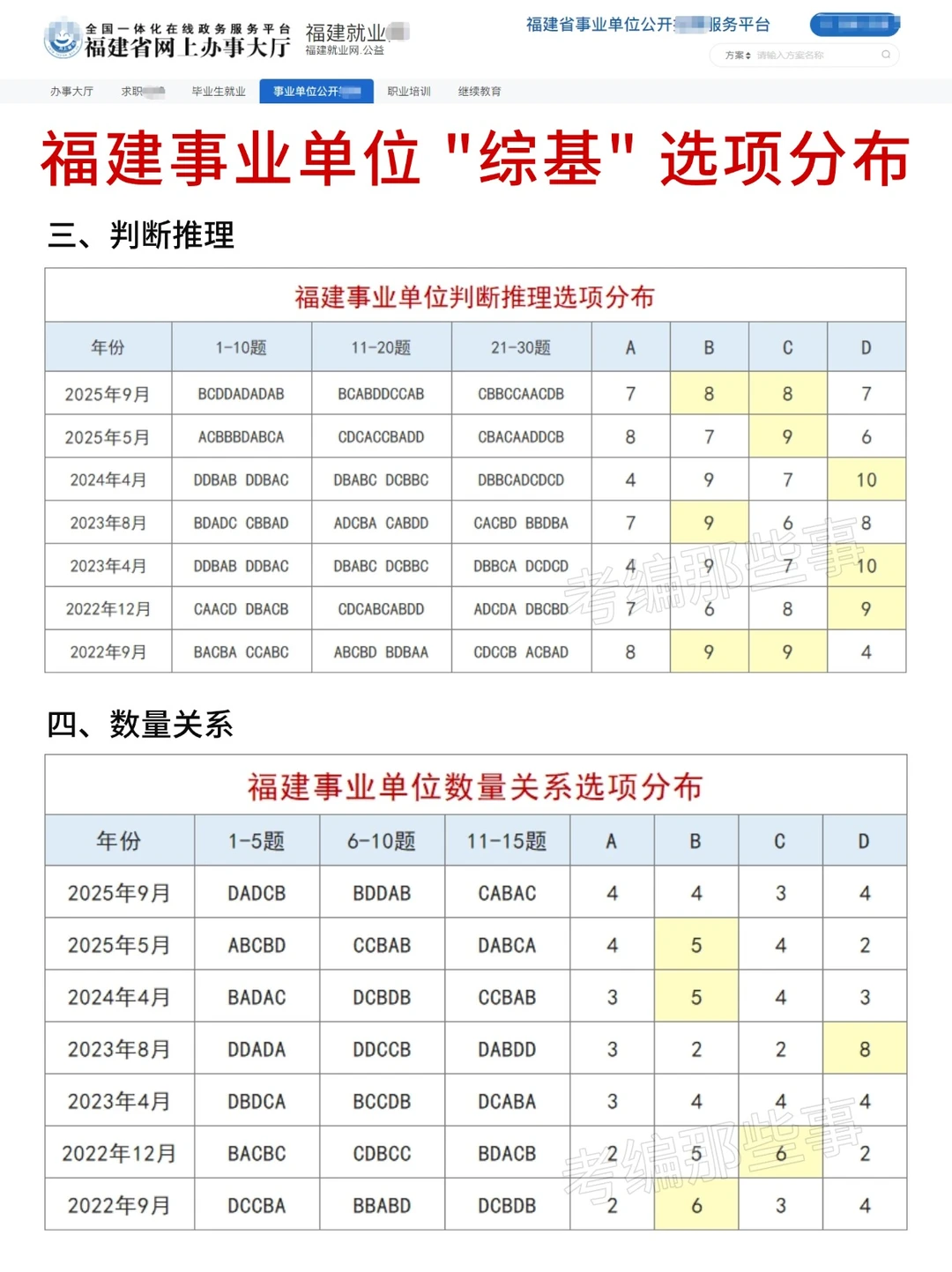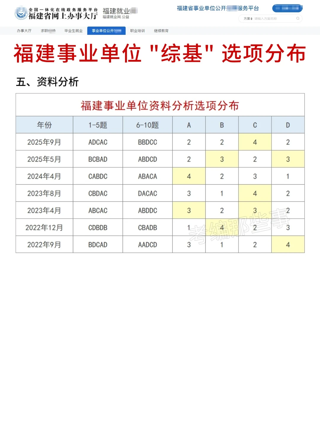 福建事业单位选项分布!425联考就这么蒙