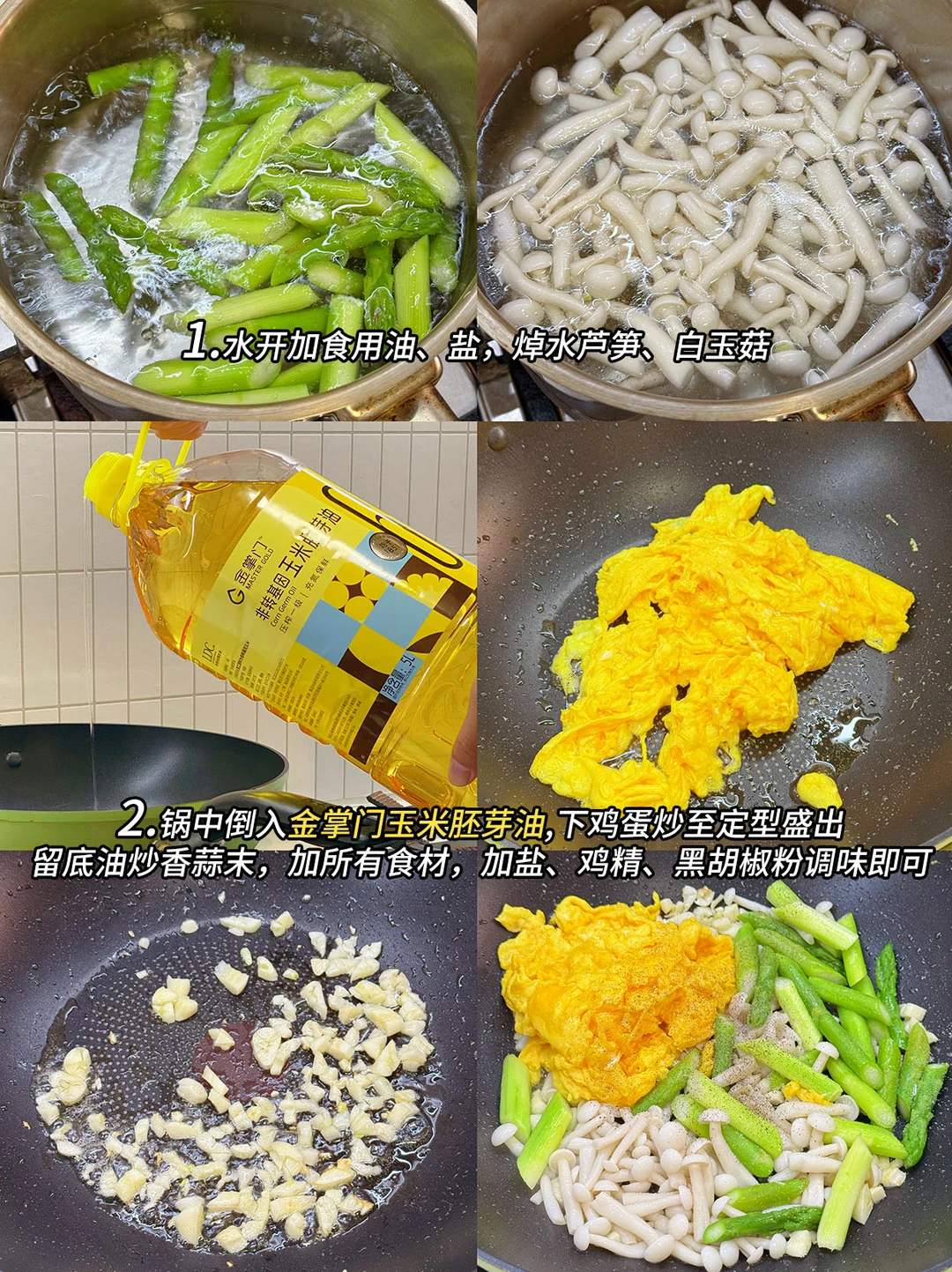 3️⃣芦笋白玉菇炒蛋