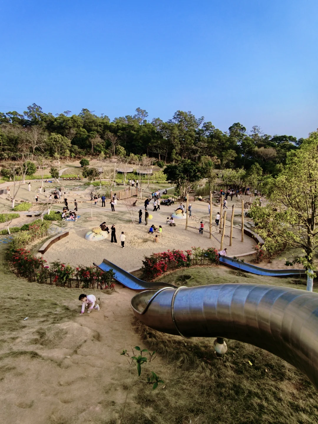✅无动力儿童乐园:放手遛娃好去处,超长S弯滑梯、沙池、攀爬网、溜索最受欢迎