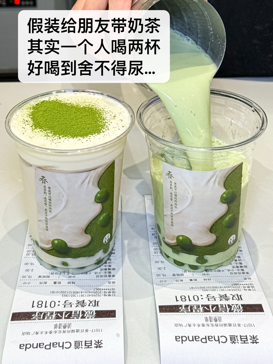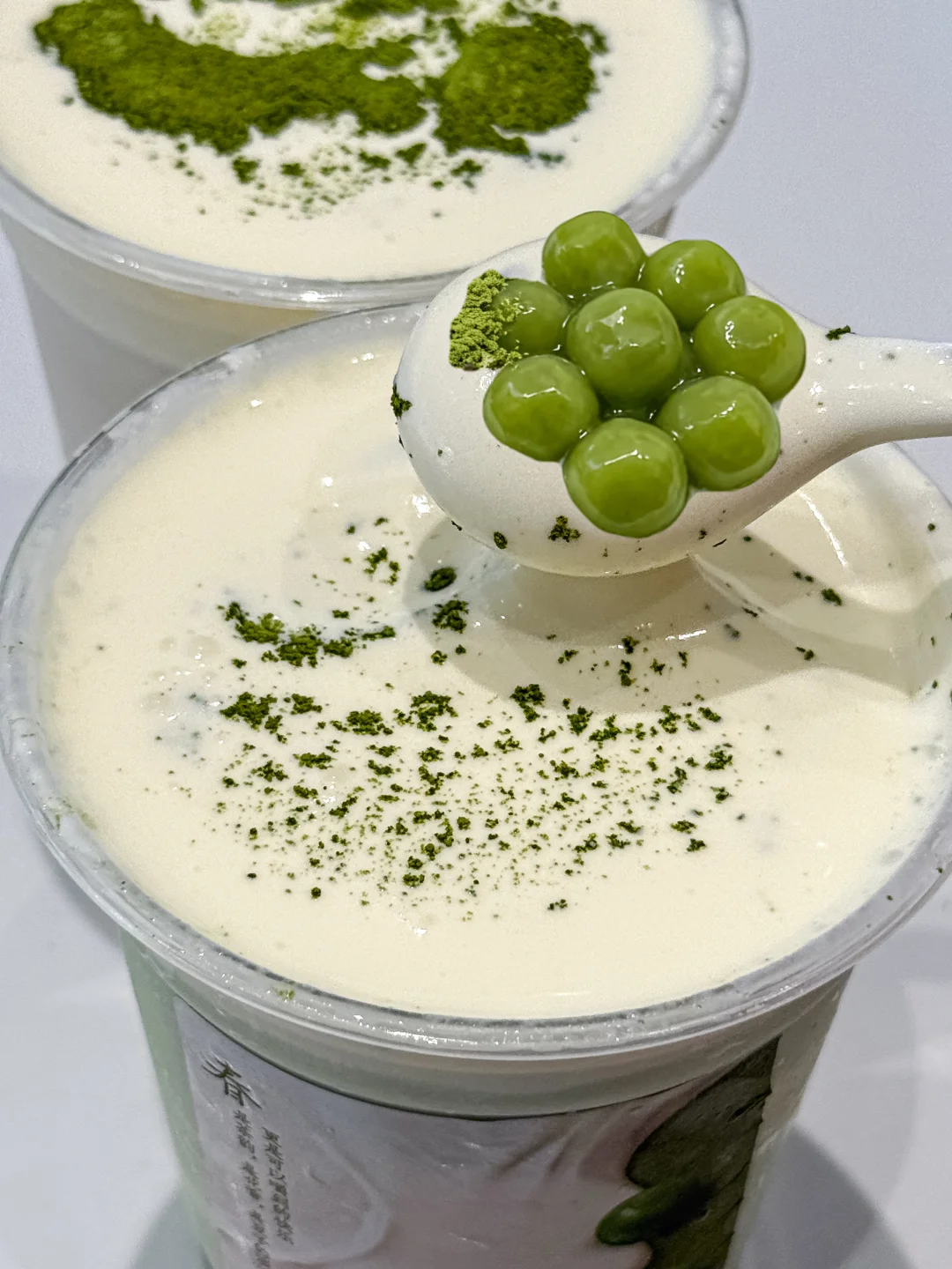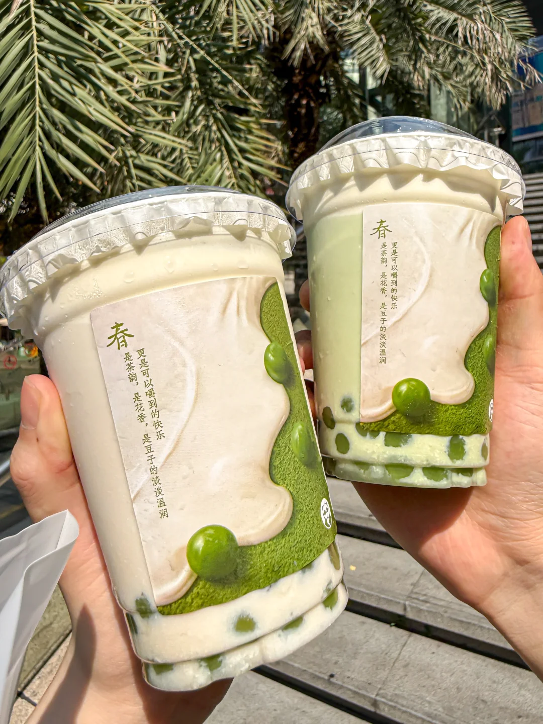 抹茶清苦回甘,现磨豆浆醇厚绵密、豆香浓郁,没有豆腥味~顺滑得像云朵,搭配芝士奶盖越喝越香!重点夸夸里面的斑斓青团小料!天然的嫩绿色,闻着就是淡淡的草木清香,糯叽叽的口感软fufu的,吸起来顺滑又不堵吸管,嚼起来还有点韧劲儿,和丝滑的豆浆底搭在一起,像把春天的风喝进嘴里了!