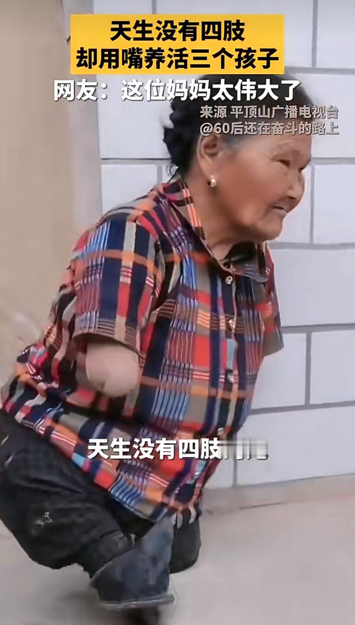 “为母则刚!”甘肃有位81岁老奶奶,天生没手没脚,却把三个孩子拉扯大!别人用双手抱孩子,她用嘴叼着奶瓶喂;别人下地干活,她用下巴扛着锄头刨!而且她家孩子个个争气,如今儿孙满堂日子红火。这没四肢的妈妈到底怎么做到的?