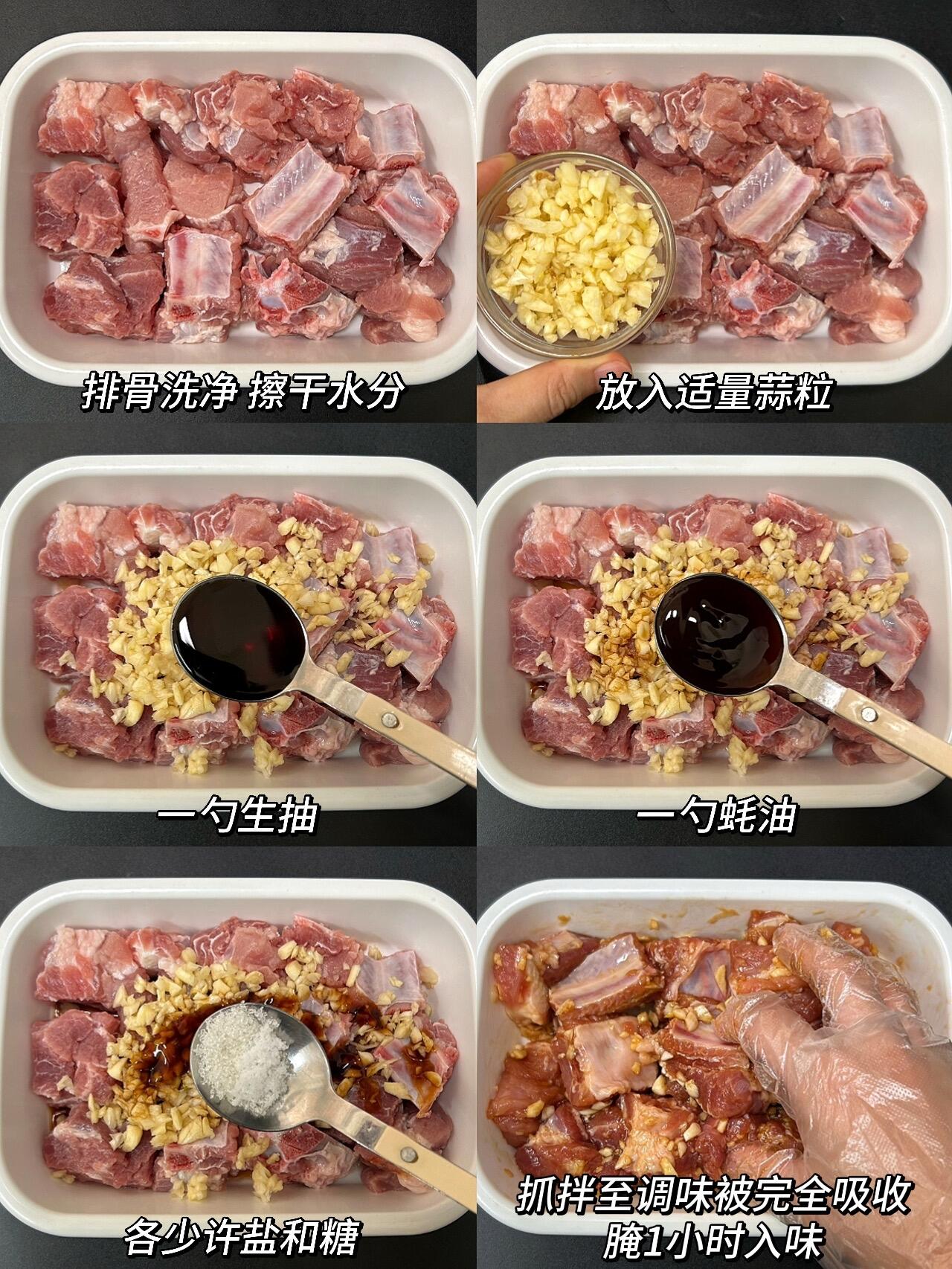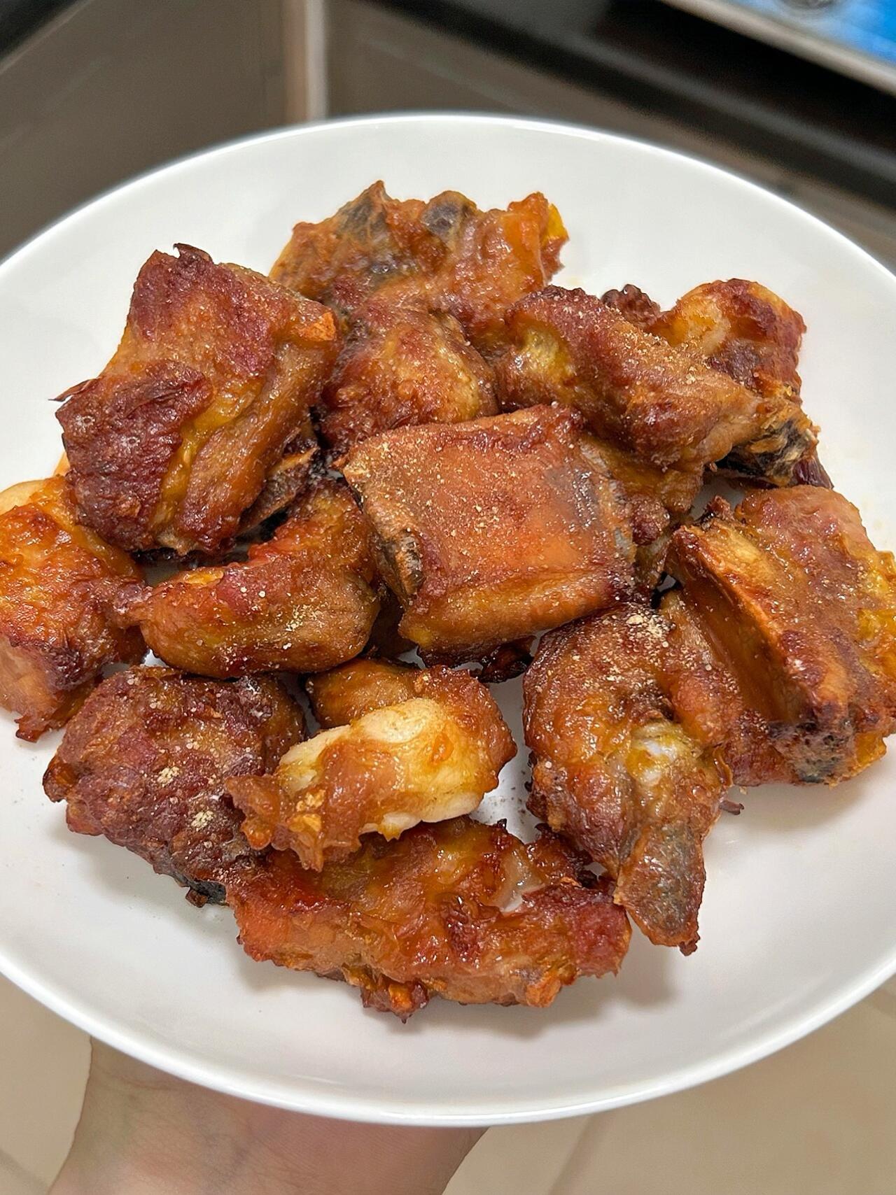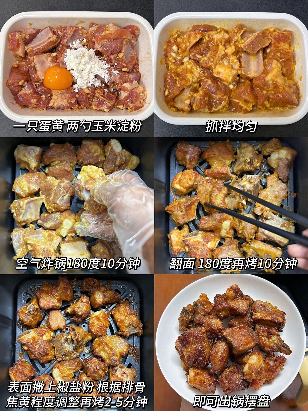 🔥小提醒:每家空气炸锅的“脾气”不一样,还有排骨的块头大小也有差异,烤的时候可以多留意一下,灵活调整时间,这样烤出来的排骨才更焦香好吃哦!