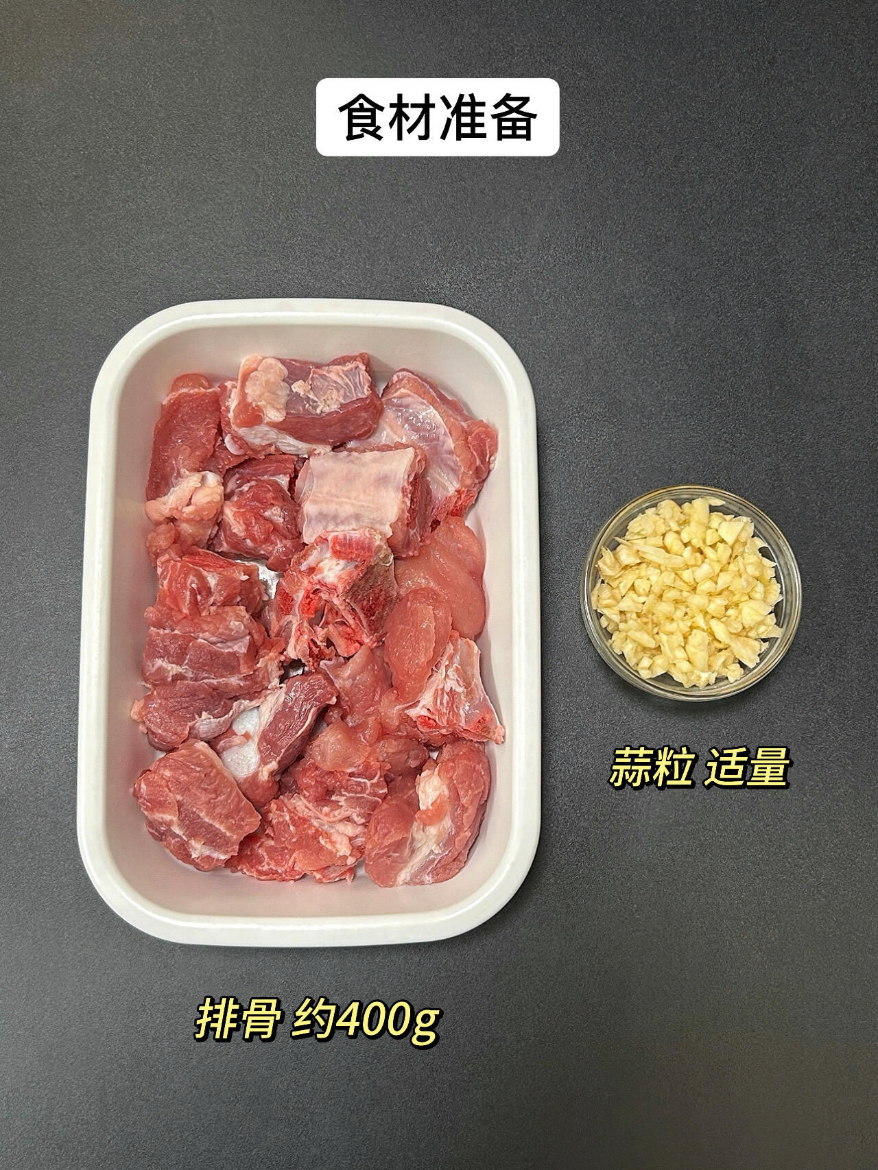 ✅准备食材:排骨约400g、大蒜1头、蛋黄1个、玉米淀粉2勺、椒盐粉适量