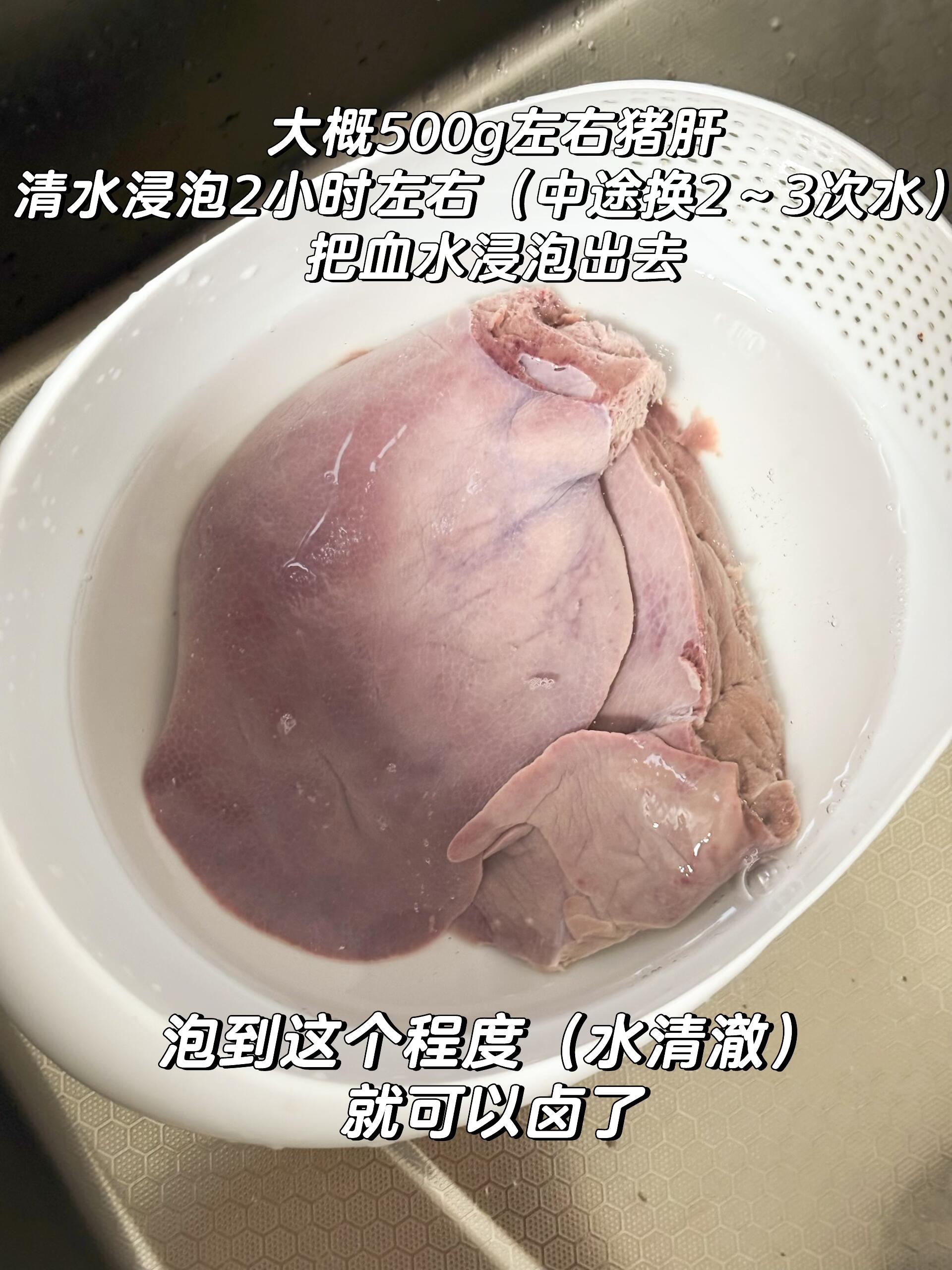 猪肝切大块,拿清水浸泡2-3小时(这步不能省!),把血水泡干净,卤出来才没有那股怪味。