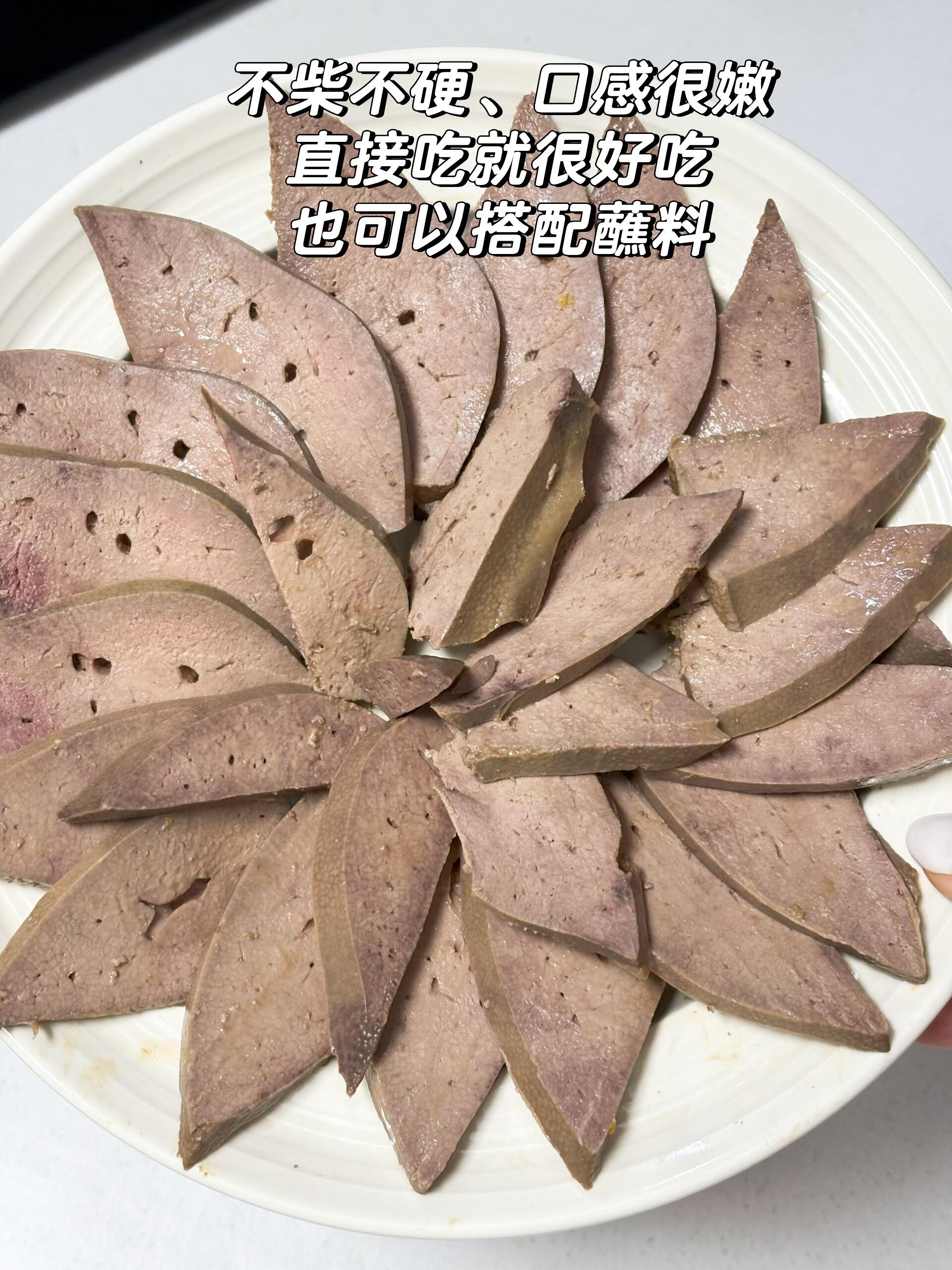 泡够了时间的猪肝,切开是那种沙沙的口感,嫩到爆汁! 卤香浓郁,不用蘸醋也不用蘸辣椒面,直接吃就巨香!配粥或者下面条,简直是人间美味!