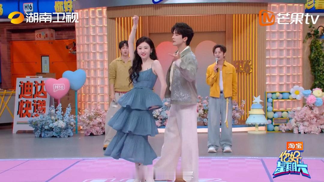 景甜和张新成合跳太权威了你好星期六跳舞时的状态松弛又自信,节奏踩得丝毫不差,实力