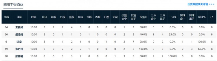 四川:张高铭8分3篮板2助攻,张力升6分2篮板2助攻1抢断。