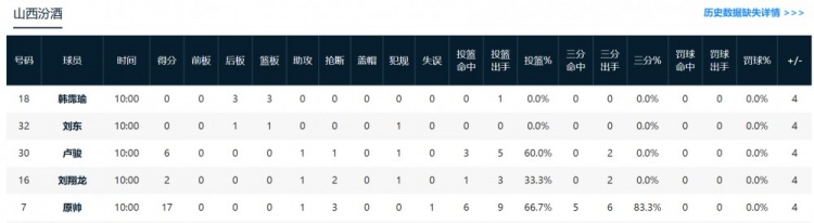 山西:原帅17分1助攻3抢断。
