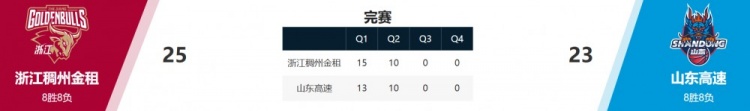 浙江25-23击败山东。