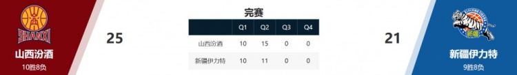 山西25-21战胜新疆。