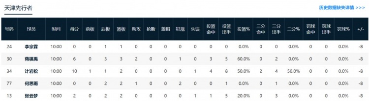 天津:计岩松10分2篮板,蒋祺禹6分3篮板2助攻。