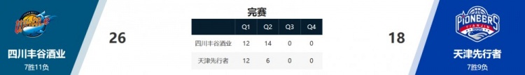 四川26-18战胜天津。