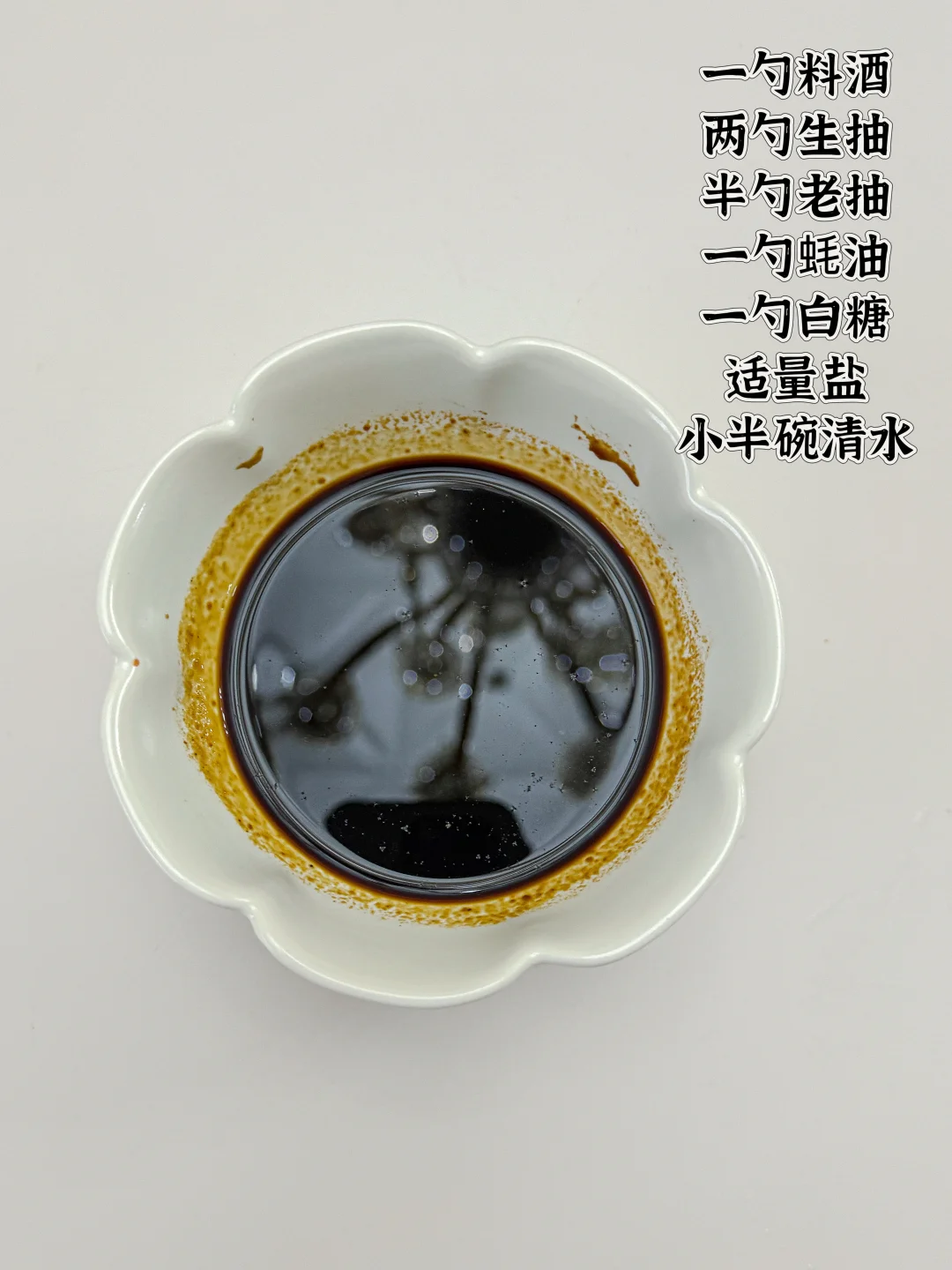 2️⃣ 调灵魂酱汁:1勺料酒+2勺生抽+半勺老抽+1勺蚝油+1勺白糖+适量盐+小半碗清水搅匀