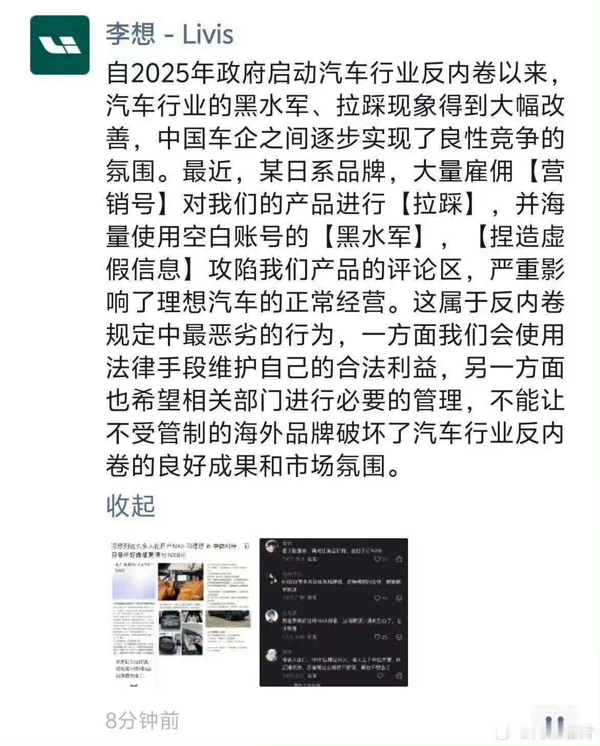 理想汽车就被拉踩对比报案李想称存在有组织的违法犯罪行为 绝大部分人没看懂,其实李