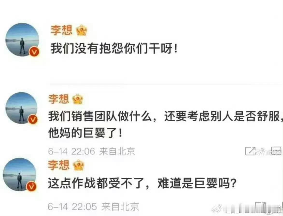 最后,我想引用李想本人的一句话:这点作战都受不了,难道是巨婴吗?