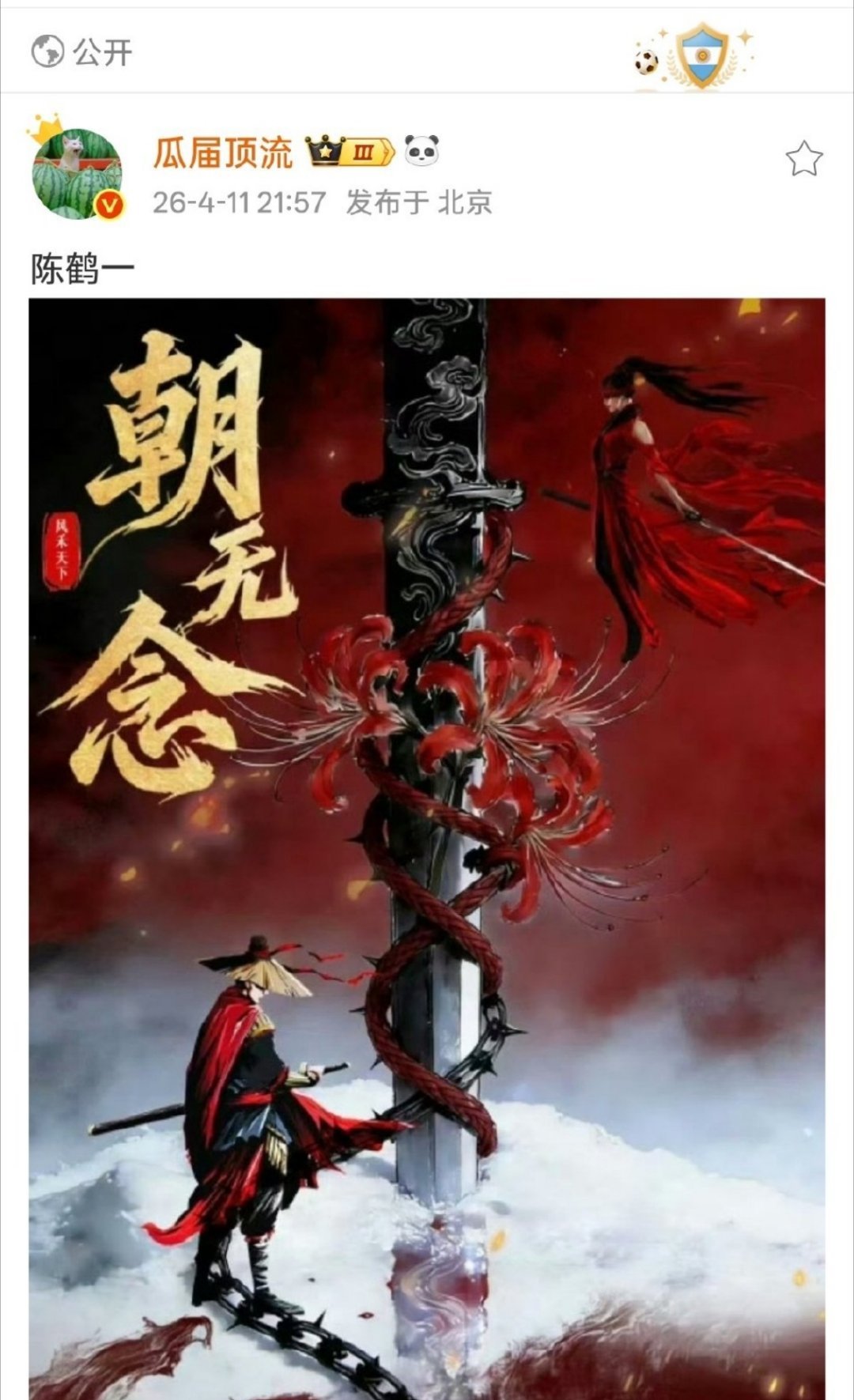 陈鹤一的新饼,武侠剧朝无念,郭虎的饼