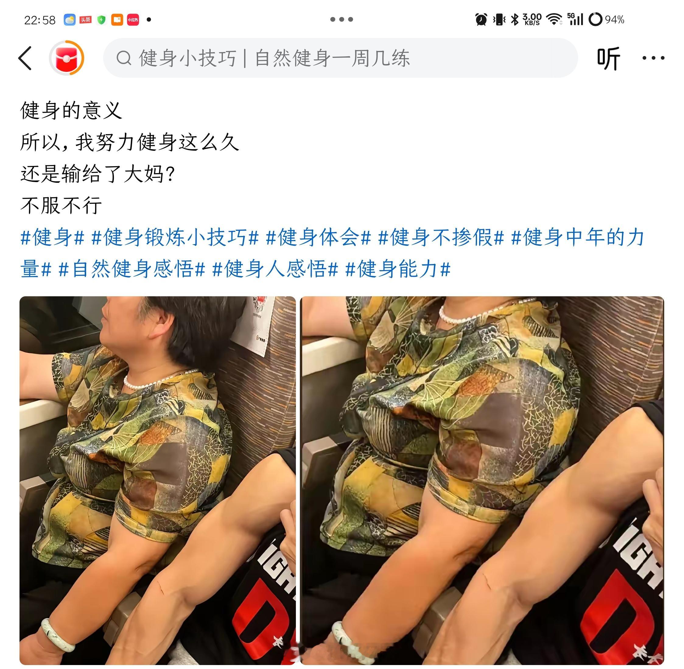 哈哈哈,莫丧气!就这么说了吧,自然健身/健美的(不打药),你一辈子都不可能在“视觉臂围”上,战胜寻常见的大妈们的脂肪臂