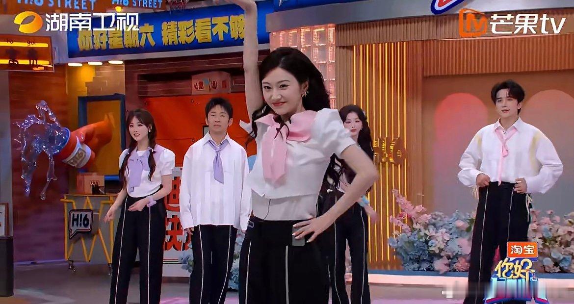景甜现身综艺现场,手持话筒笑容明媚,粉领白衫搭配黑裤,元气感拉满,甜妹的魅力谁能