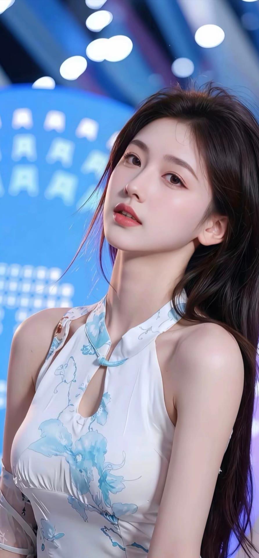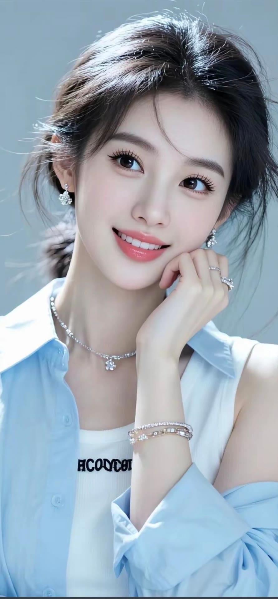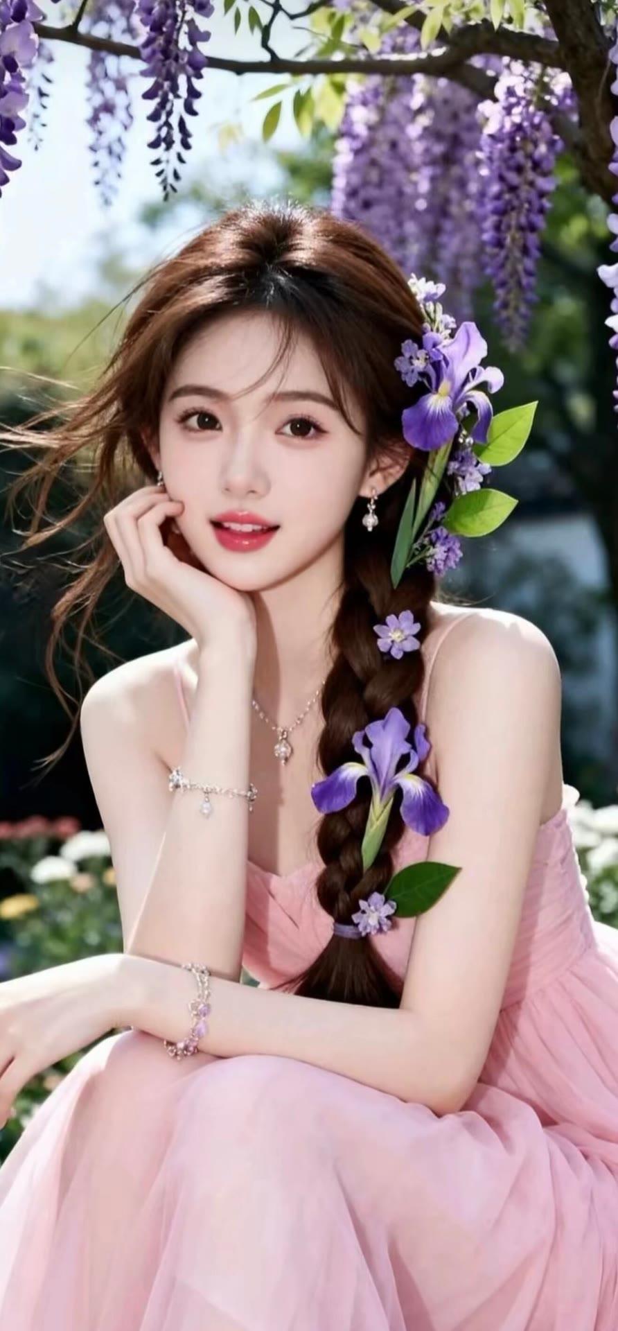 碧水青山间,佳人似画来。
