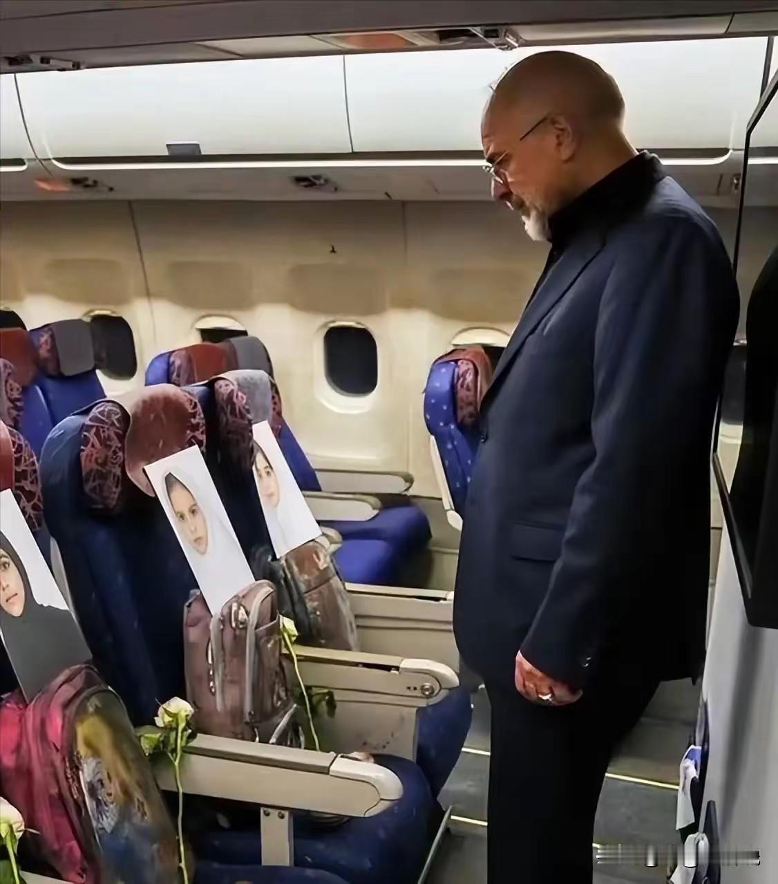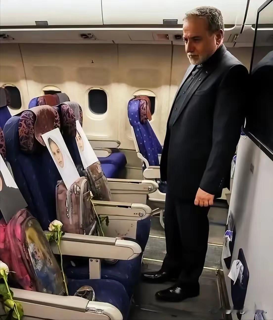 飞机上,一排排空座位格外刺眼。这些座位上没有乘客,只放着遇难儿童的照片和书包。卡利巴夫在自己的社交媒体账号上发了一张照片,配文只有六个字——“我的飞行同伴们”。照片上,一身正装的卡利巴夫低头凝视着这些座位,神色凝重,沉默良久。他带上了这些孩子,因为他们才是这场战争中“最大的受害者”,也是伊朗谈判桌上“最重的筹码”。