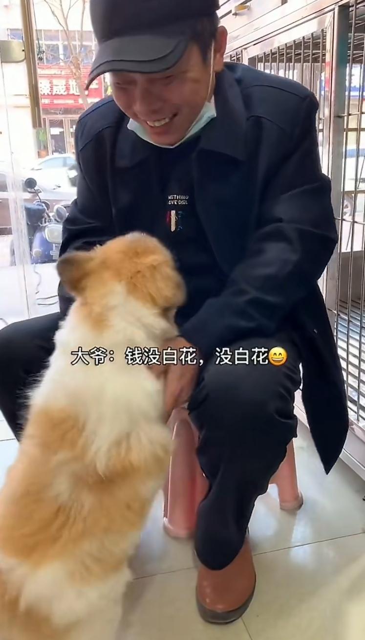 大爷养了只小狗,一直以为是黄黑花的。直到送去宠物店洗了个澡,接回来时,他愣住了—