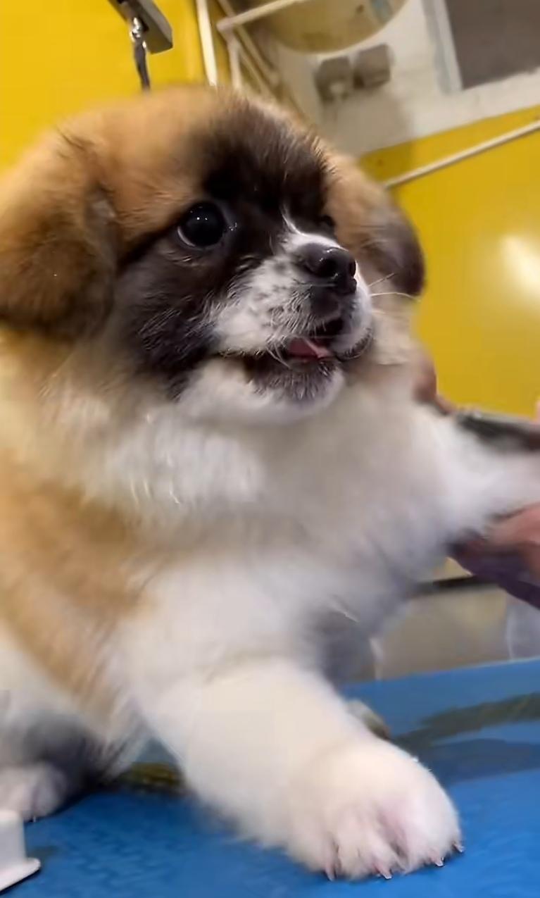 大爷养了只小狗,一直以为是黄黑花的。直到送去宠物店洗了个澡,接回来时,他愣住了——狗还是那只狗,可花色怎么变了?黄黑花变成了黄白花。