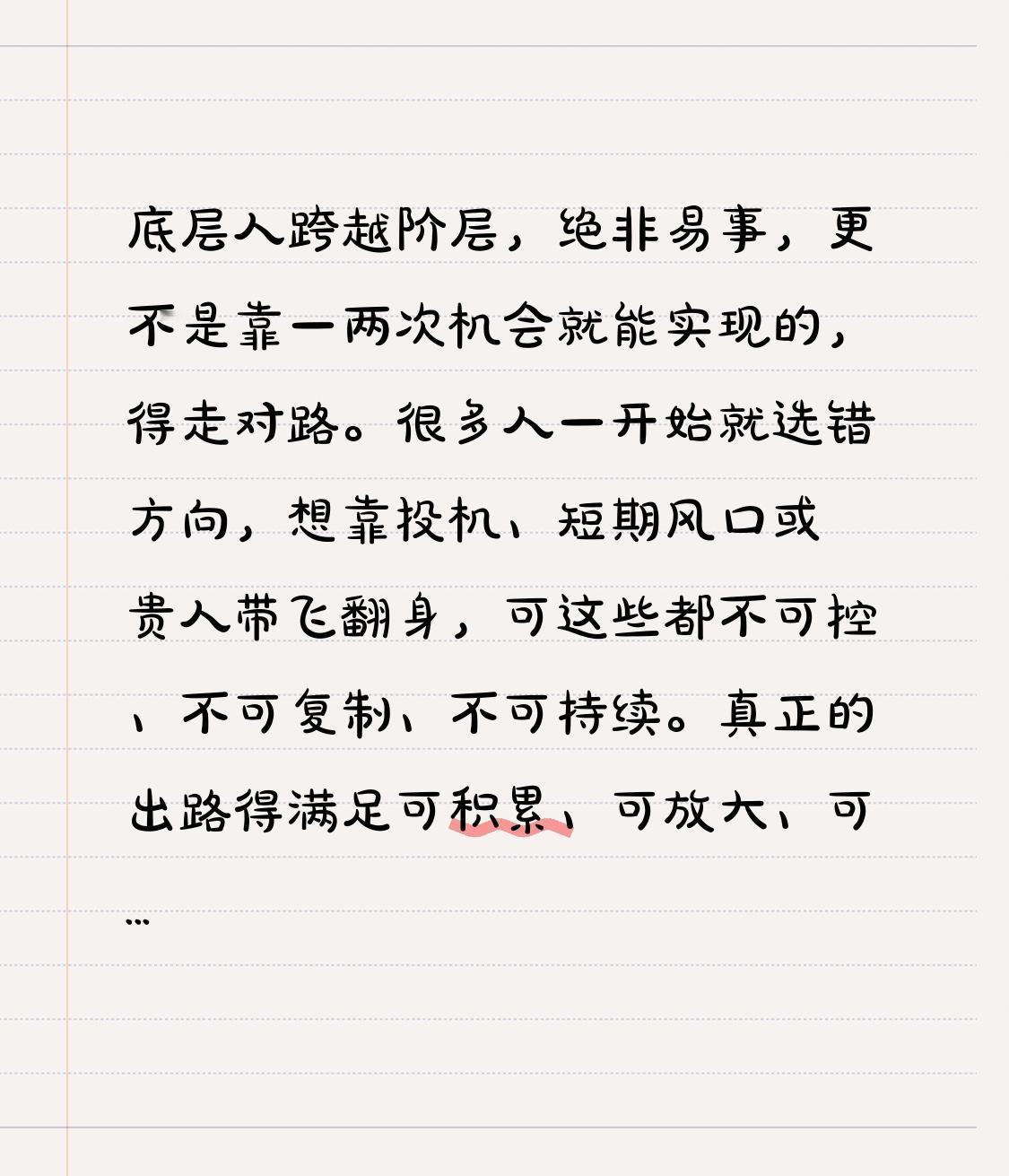 底层人跨越阶层,绝非易事,更不是靠一两次机会就能实现的,得走对路。