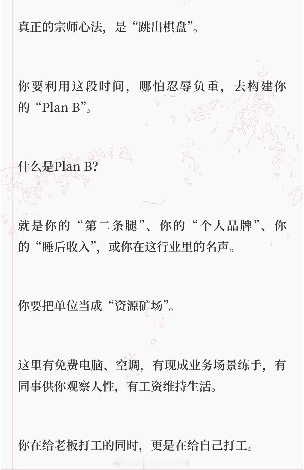 我不太懂同事怎么想的,居然买的卧铺去+飞机回,百思不得其解,是为了不耽误事吗,那周一早班机啊,是为了更经济吗,每个人贵300多,三个人贵1000块啊。工作上遇到不爽,我就逃避,没办法跟老公分享,他的位置永远不可能共情我,他就觉得你要服从。让干嘛就干嘛,让去那就去那,要有化敌为友的能力,要雕刻自己的本事。我其实只是想跟他诉苦,想他作为倾听者就好。后来问了AI,很多女性在类似处境下会不自觉地迁怒丈夫,但应该公事公办,不向丈夫诉苦。AI这个最强大脑,服了。其实我消化了,公事公办,起码保护了我的婚姻,不会让我俩争吵,伤害感情。看来,这个职场,半年了,我还没有融入,尤其是今年跟老板的交流比去年更多以后,同事们的心理也会微妙变化。可能也会觉得,你一个混子空降,凭什么。连跟婆婆抱怨的时候,婆婆都说别搭理让你不开心的人,但是以前的话术是不开心别干了。老公的话术是,没有我你怎么办,你还不是要独自面对这个社会。多了一份收入,一切都变得不一样了。那我就想,我的初衷是什么,我自己要修炼什么,两年前我就想回归职场或者说有一份至少能养活自己的收入,不说给家庭收入增光添彩,只是想自己经济独立,来抵御未知的风险,这两年自媒体(没成)兼职换了全职,初衷不就是让自己经济独立吗。修炼自己就做到,言慢者贵,性柔者富,小妹就说我话太多,所谓言多语失,让我做颗小四季豆,四季豆是什么梗我不知道啊,火速去学习了。允许自己做自己允许别人做别人,如果这个事不是我负责的,那么我就只能被动接受,可以从合肥直接去,可以双飞,可以高铁,直接去最经济,双飞最舒适,价格适中,卧铺+飞机最折腾最贵。但是这不是我负责的,我提出意见自然得罪选行程的人。允许别人做别人就是字字珠玑。勿在别人心里修行自己,勿在自己心中强求别人。就是我应该在工作中修炼成四季豆人格。也别做生活中有怨气的女子吧,不急不躁,清淡欢颜。