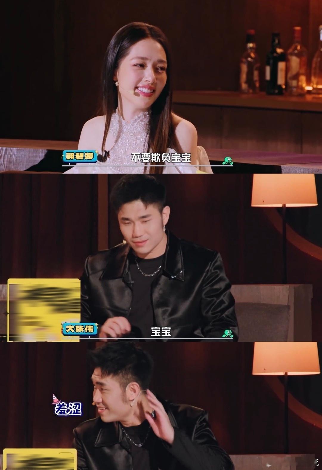 郭碧婷叫翟佳宁宝宝郭碧婷又多了一个宝宝 在节目里郭碧婷调皮地叫翟佳宁“宝宝”,翟佳宁的反应也太可爱了吧!直接害羞到低头,真的是瞬间变成了娇羞小奶狗,真心被他们的互动治愈了。