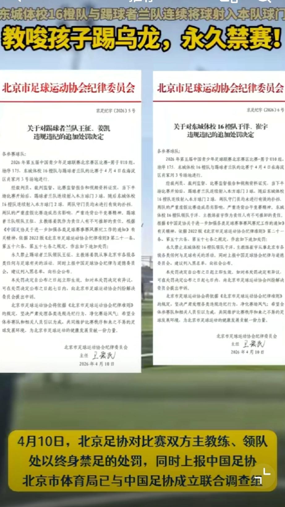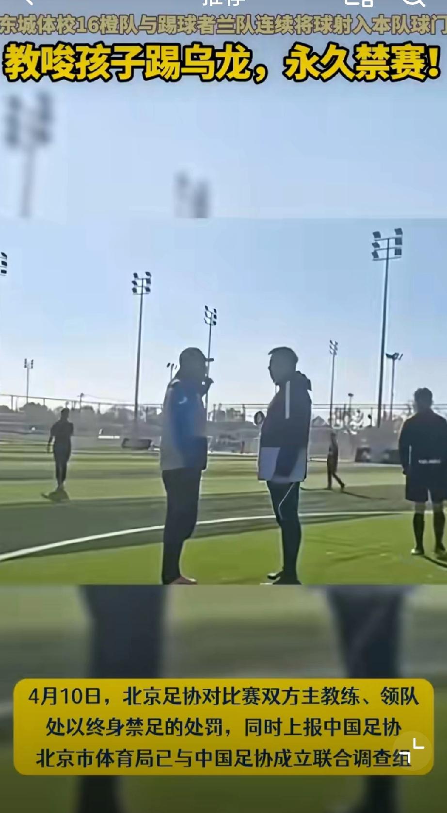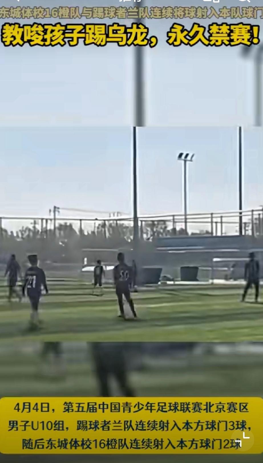 东城体校教练曾在对方打入乌龙球后向裁判抗议,但裁判以“活球状态无法干预”为由未中止比赛,最终双方演变为集体消极比赛。男篮U21冲突 u17青年队 中超u18