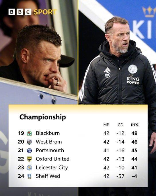 【降级危险】英冠第42轮,莱斯特城名宿瓦尔迪现场观看老东家对斯旺西的比赛,但蓝狐最终0比1不敌对手,近16轮仅仅1胜,英冠排名第23,落后安全区4分!英超