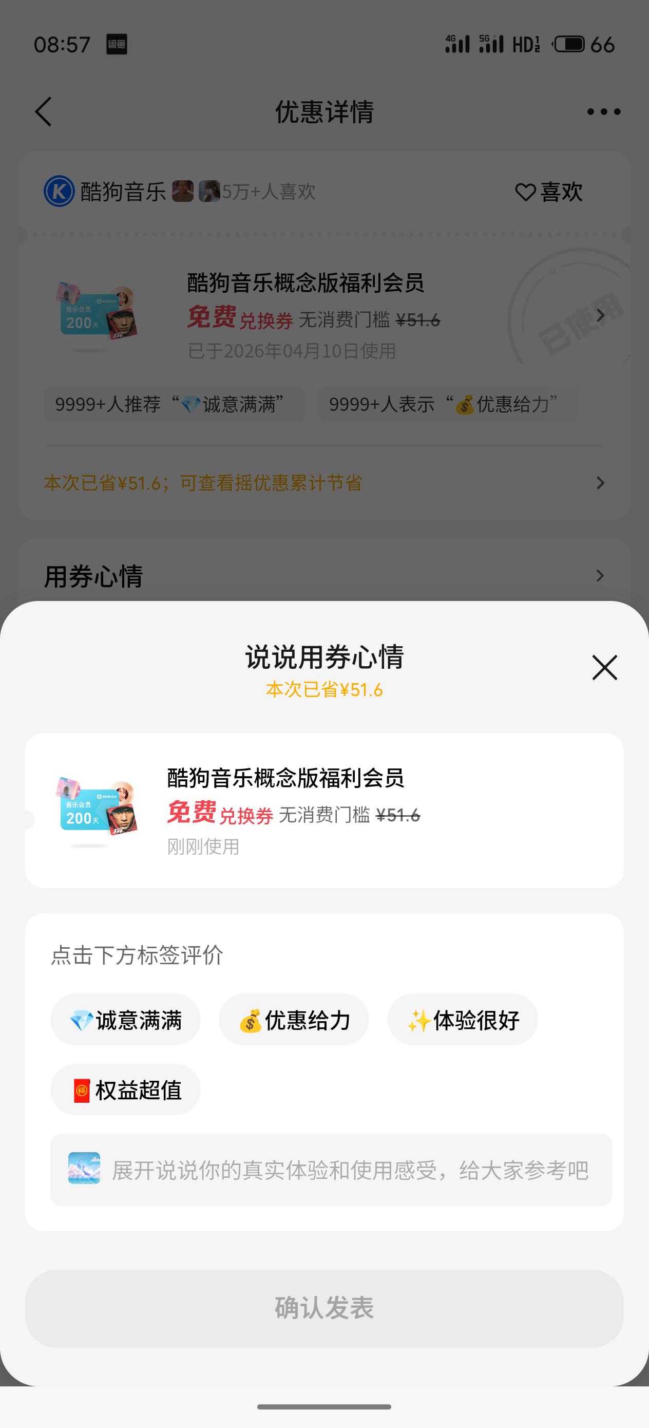 摇优惠 摇出来一个酷狗概念版 开始听歌啦