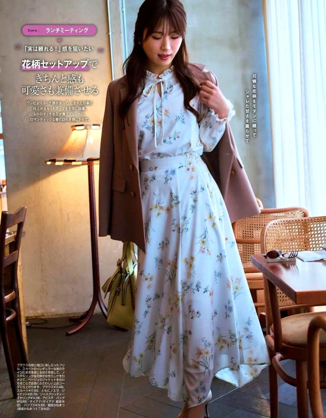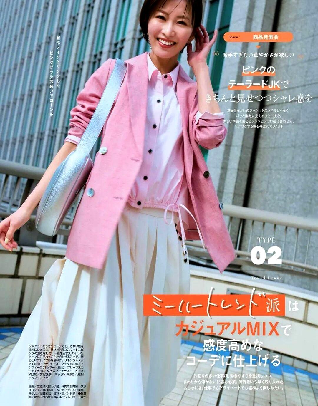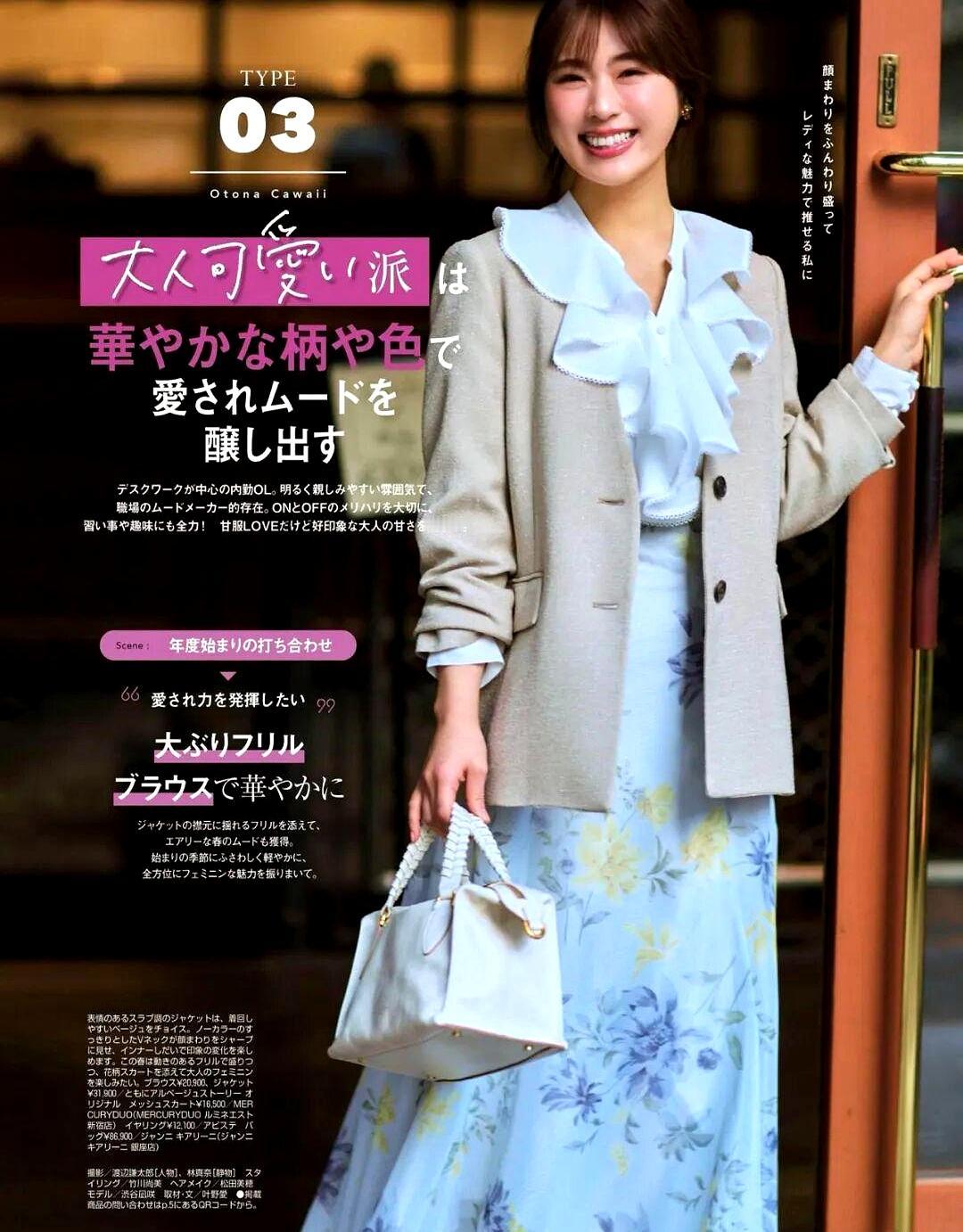 她这次的风格是“大人甜”,封面笑得还是一如既往的治愈。内页里,她用复古蕾丝搭配牛仔,轻松穿出了春天的感觉,完全就是行走的穿搭教科书。