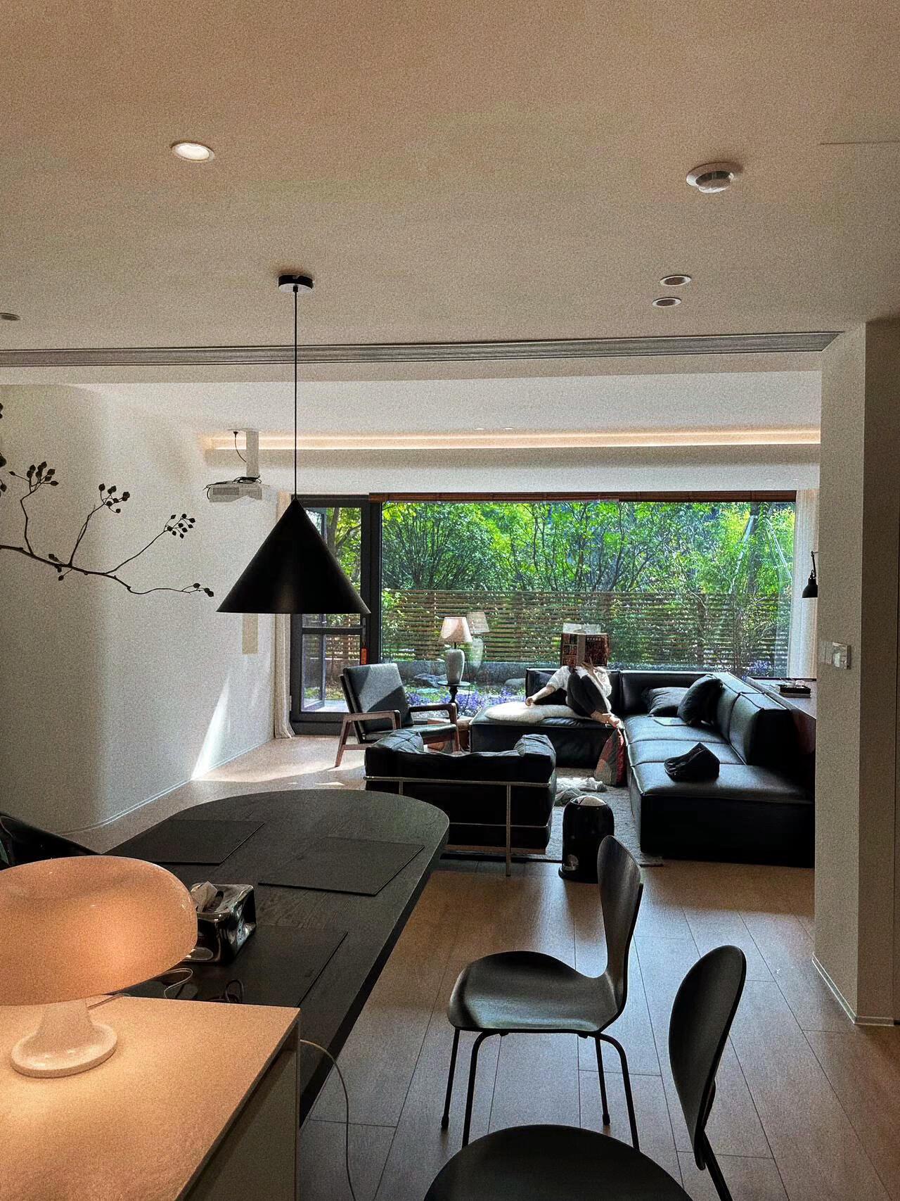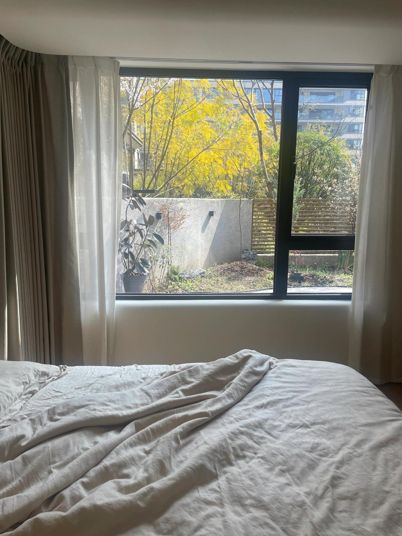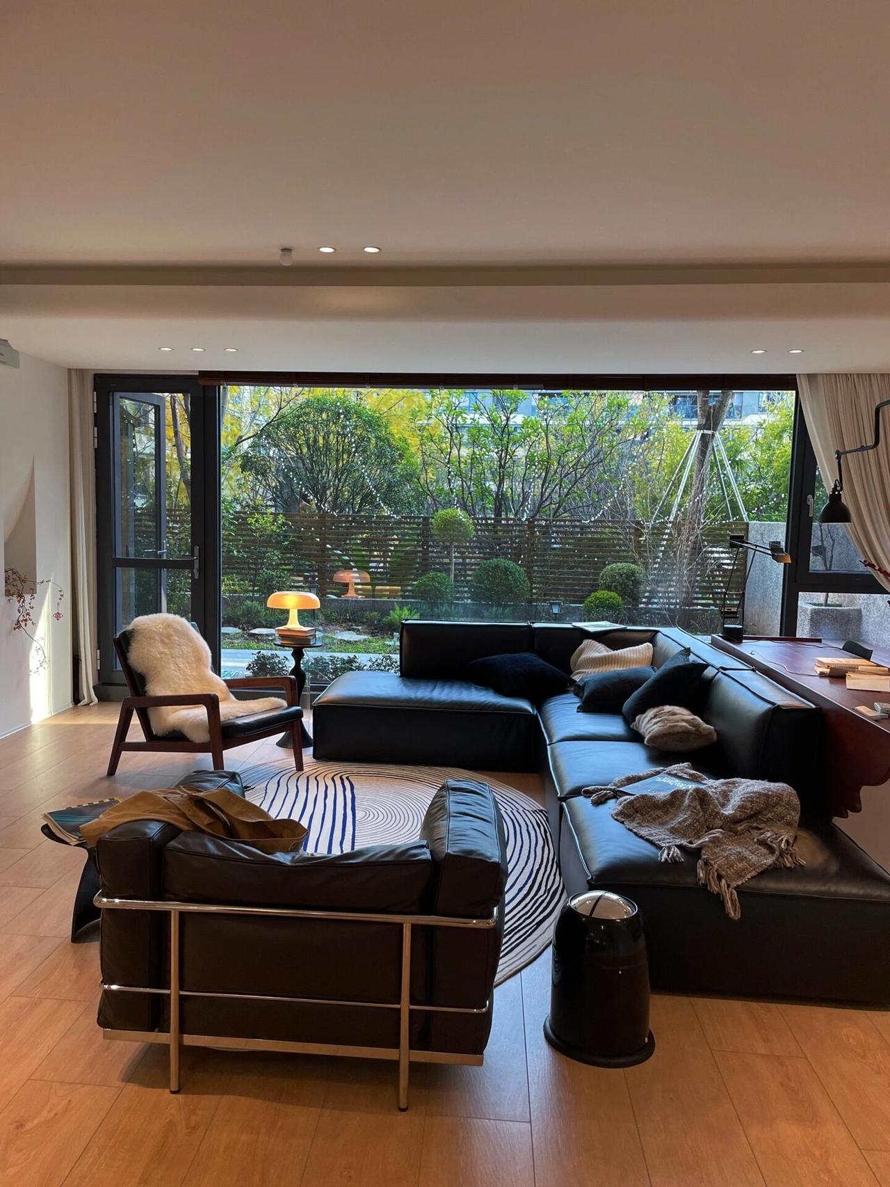 很多人嫌弃一楼,但我这里,没有阴暗,没有潮湿。前院和后院都能晒到太阳,天气好的时候,阳光从落地窗洒进来,能铺满一整天的客厅。朋友来做客,都惊讶地说:这视野,简直像大平层。