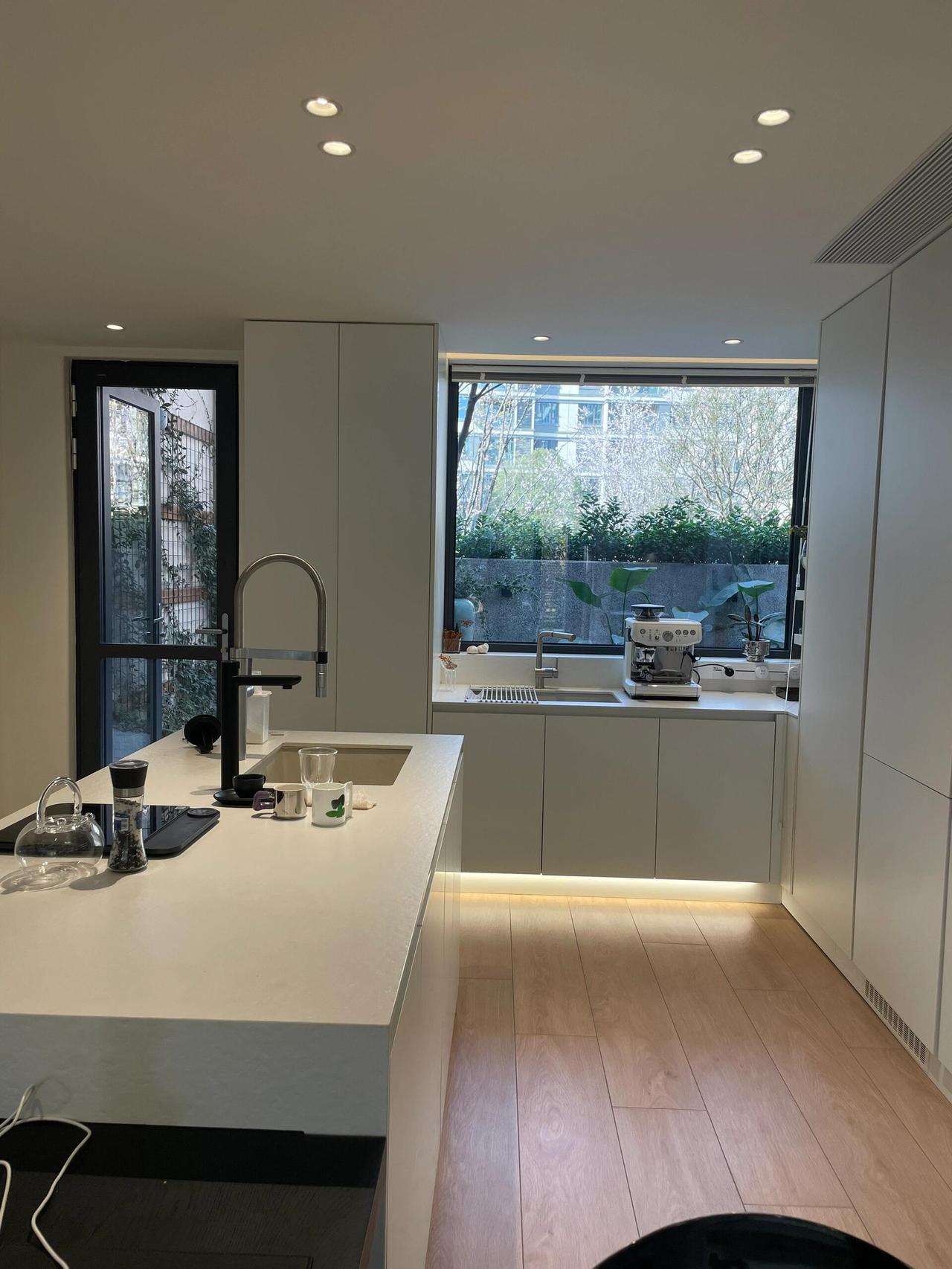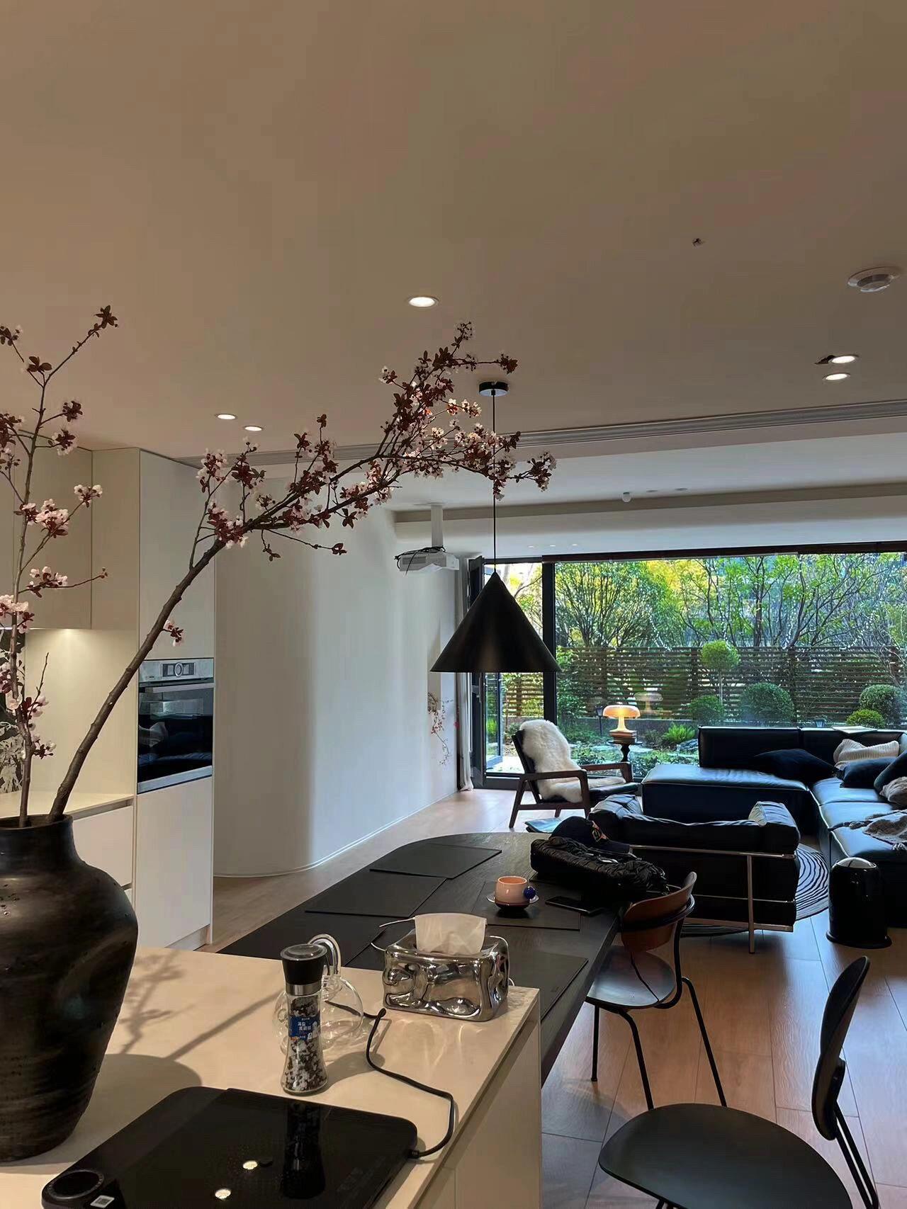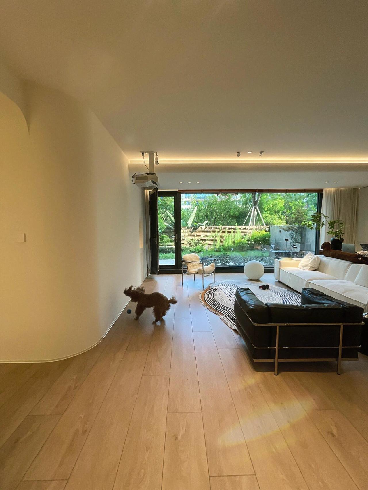 很多人嫌弃一楼,但我这里,没有阴暗,没有潮湿。前院和后院都能晒到太阳,天气好的时候,阳光从落地窗洒进来,能铺满一整天的客厅。朋友来做客,都惊讶地说:这视野,简直像大平层。