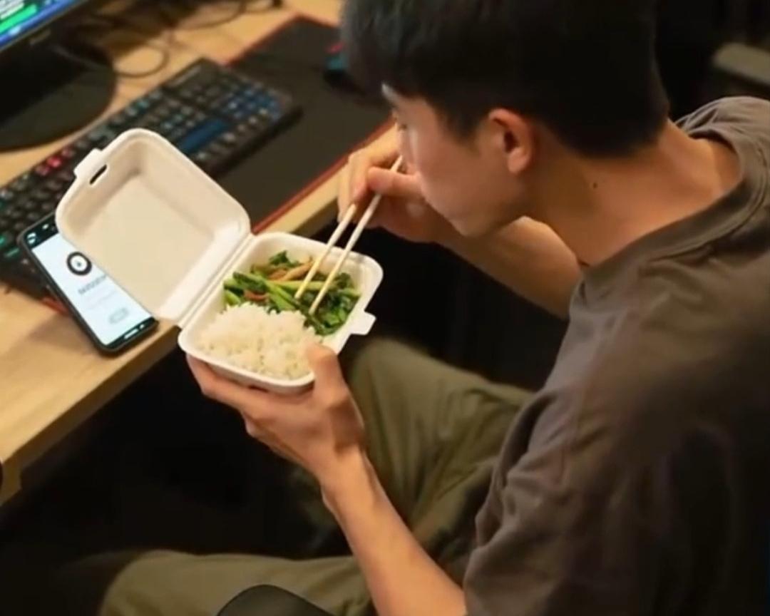 小哥敲开门一瞅,餐盒就摆在门口的桌子上,里面的饭菜吃得干干净净,连点汤都没剩。