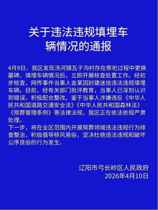 弓长岭区在通报中表示,将在全区范围内开展殡葬领域违法违规行为排查整治,坚决杜绝破坏公序良俗的行为。